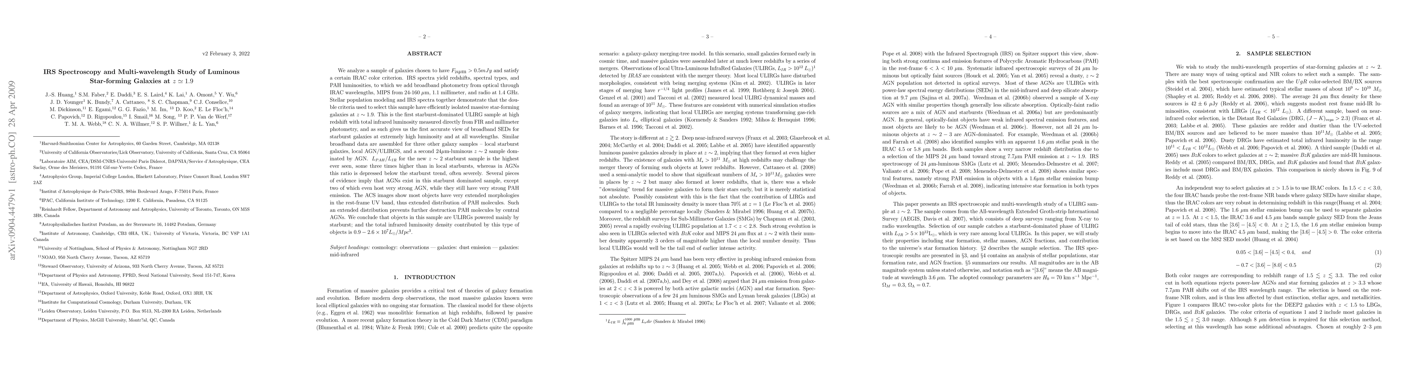 We analyze a sample of galaxies chosen to have F24>0.5 mJy and satisfy a certain IRAC color criterion. IRS spectra yield redshifts, spectral types, and PAH luminosities, to which we add multi-wavelength broadband photometry. Stellar population modeling and IRS spectra together demonstrate that the double criteria used to select this sample have efficiently isolated massive star-forming galaxies at z~1.9. This is the first starburst-dominated ULIRG sample at high redshift with total infrared luminosity measured directly from FIR and millimeter photometry, and as such gives us the first accurate view of broadband SEDs for starburst galaxies at extremely high luminosity and at all wavelengths. Similar broadband data are assembled for three other galaxy samples -- local starburst galaxies, local AGN/ULIRGS, and a second 24mu-luminous z~1.9 sample dominated by AGN. L(PAH)/L(IR) for the new z~1.9 starburst sample is the highest ever seen, some three times higher than in local starbursts, whereas in AGNs this ratio is depressed below the starburst trend, often severely. Several pieces of evidence imply that AGNs exist in this starburst dominated sample, except two of which even host very strong AGN, while they still have very strong PAH emission. The ACS images show most objects have very extended morphologies in the rest-frame UV band, thus extended distribution of PAH molecules. Such an extended distribution prevents further destruction PAH molecules by central AGNs. We conclude that objects in this sample are ULIRGs powered mainly by starburst; and the total infrared luminosity density contributed by this type of objects is 0.9-2.6x 10^7 Lsol/Mpc^3.