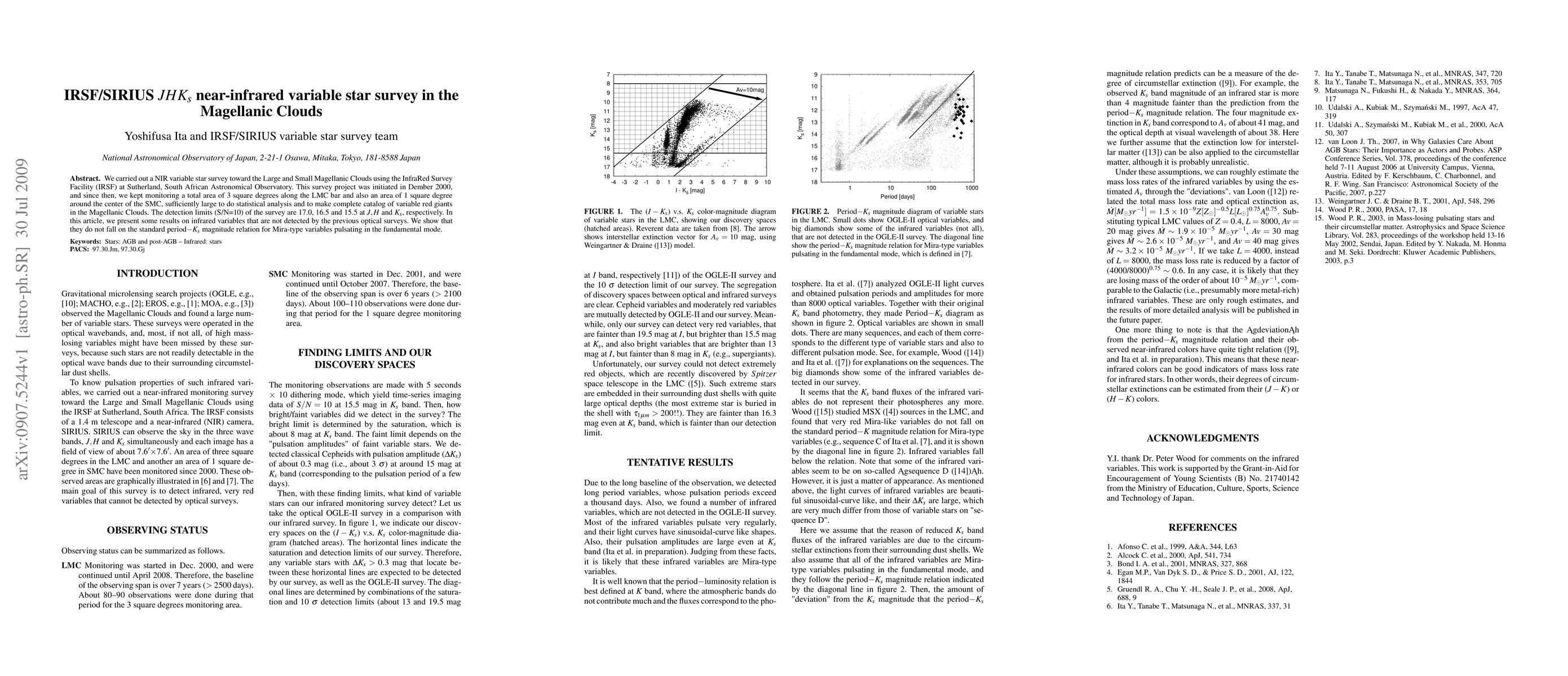 This paper reports on a near-infrared variable star survey in the Large and Small Magellanic Clouds using the IRSF, revealing new infrared variables not detected in previous optical surveys. These variables deviate from the standard period-Ks magnitude relation for fundamental mode Mira-type pulsators.