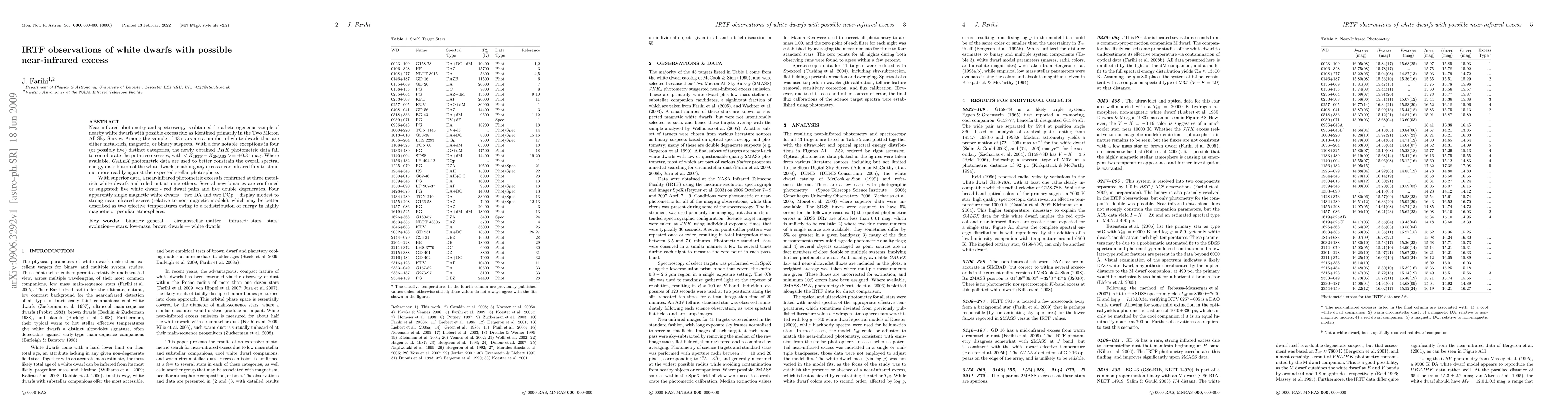 This study uses IRTF observations to investigate near-infrared excess in a sample of 43 nearby white dwarfs, finding no corroboration for most excesses. Near-infrared photometric excess is confirmed in three metal-rich white dwarfs and ruled out in nine others, with new binary systems identified.