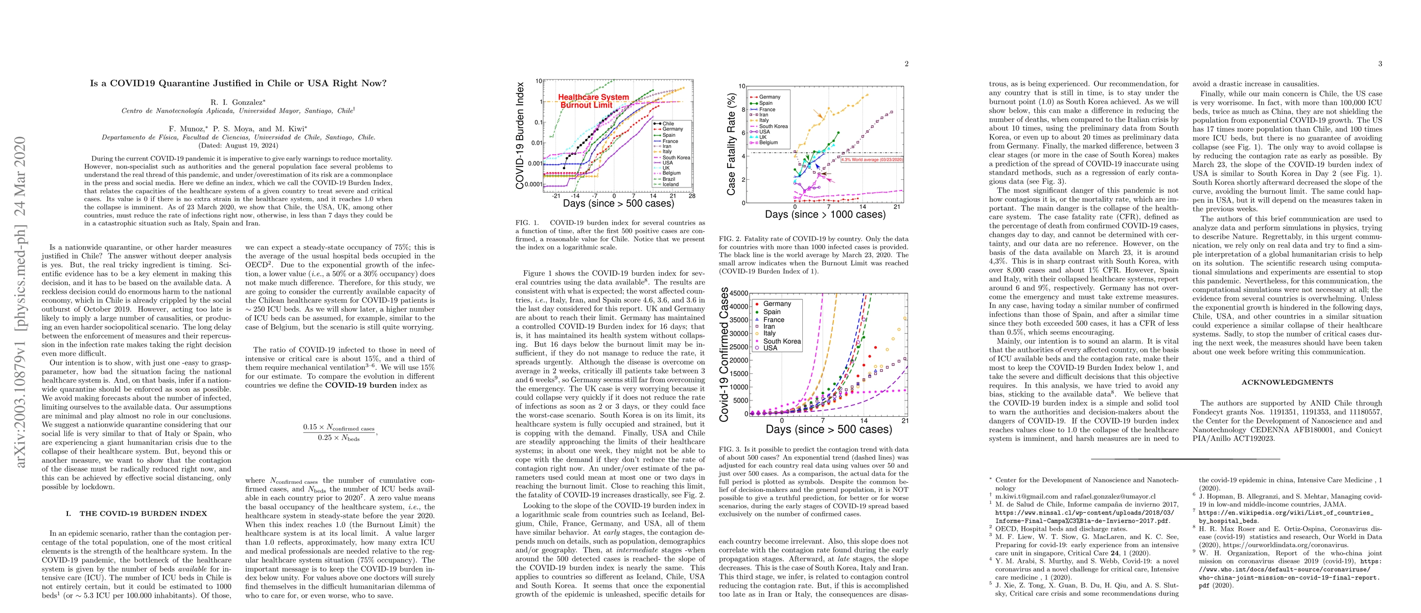 During the current COVID-19 pandemic it is imperative to give early warnings to reduce mortality. However, non-specialist such as authorities and the general population face several problems to understand the real thread of this pandemic, and under/overestimation of its risk are a commonplace in the press and social media. Here we define an index, which we call the COVID-19 Burden Index, that relates the capacities of the healthcare system of a given country to treat severe and critical cases. Its value is 0 if there is no extra strain in the healthcare system, and it reaches 1.0 when the collapse is imminent. As of 23 March 2020, we show that Chile, the USA, UK, among other countries, must reduce the rate of infections right now, otherwise, in less than 7 days they could be in a catastrophic situation such as Italy, Spain and Iran.