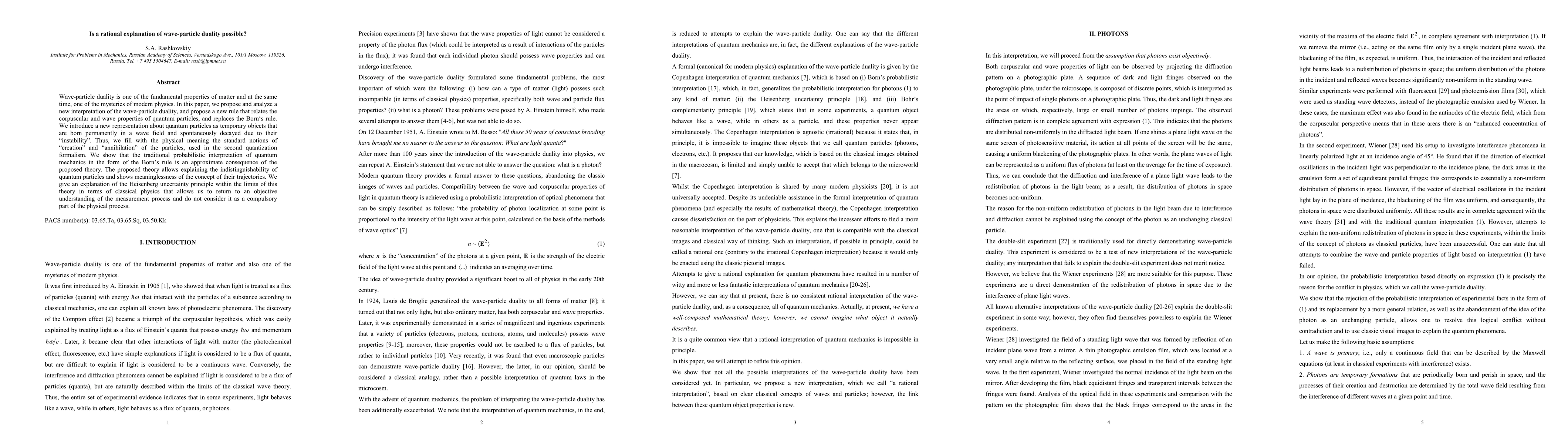 This paper proposes a new interpretation of wave-particle duality, introducing a new rule that replaces Born's rule and describes quantum particles as temporary objects in a wave field. It aims to provide a rational explanation for the indistinguishability of quantum particles and the Heisenberg uncertainty principle, offering an objective understanding of measurements.