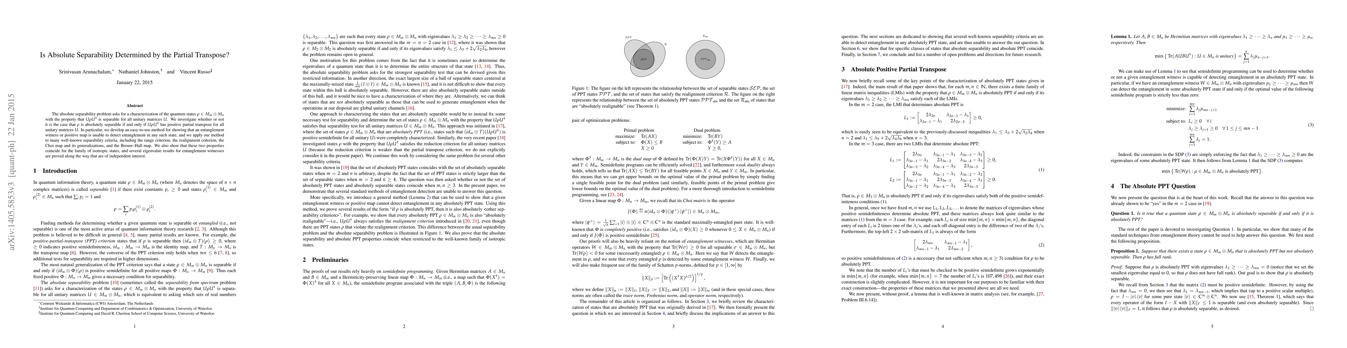 This paper explores whether absolute separability of quantum states is determined by the positivity of their partial transpose under all unitary transformations. It develops a method to show that certain entanglement witnesses cannot detect entanglement in such states and applies this to various separability criteria.