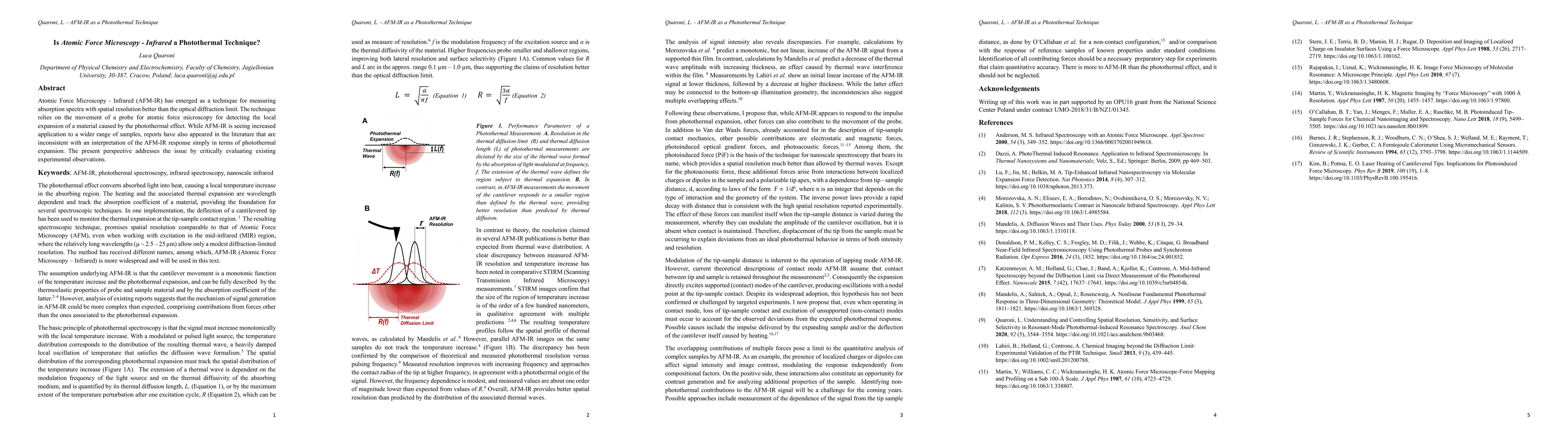Summary: AFM-IR is primarily a photothermal technique, but non-photothermal effects contribute to its signal, affecting both intensity and spatial resolution, according to a critical evaluation of existing experimental observations.