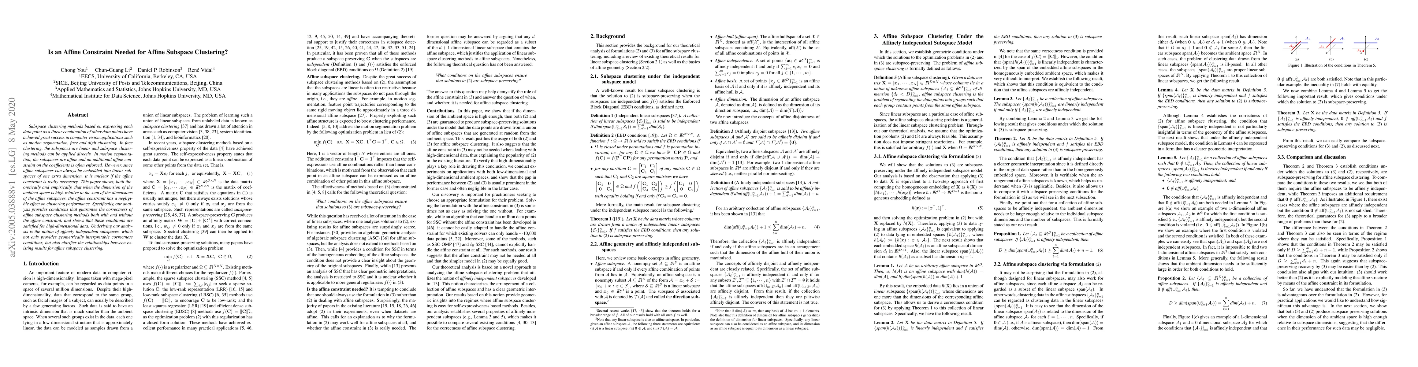 This paper demonstrates that an affine constraint is unnecessary for affine subspace clustering in high-dimensional spaces, theoretically and empirically showing negligible impact when ambient space dimensions are large relative to the sum of subspace dimensions. It provides conditions for correctness in both constrained and unconstrained methods.