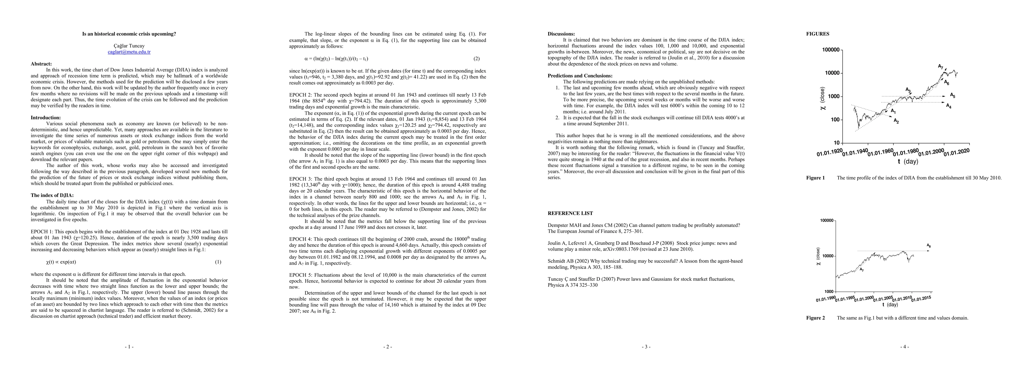 This research analyzes the Dow Jones Industrial Average (DJIA) to predict potential recession times, possibly indicating a global economic crisis, with future prediction methods and updates to be disclosed later. The author plans to regularly update the work without revising previous content, allowing readers to verify predictions over time.