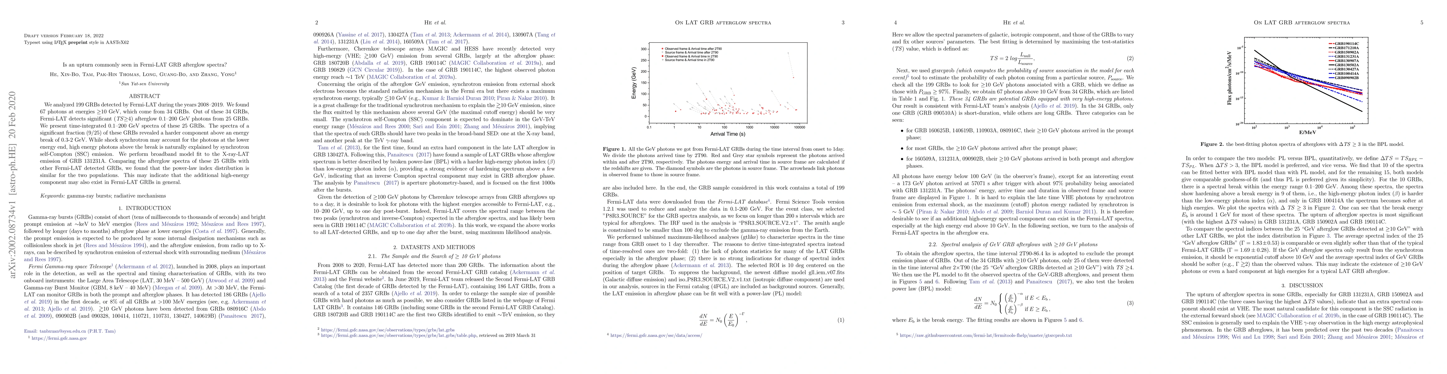 We analyzed 199 GRBs detected by Fermi-LAT during the years 2008-2019. We found 67 photons at energies >=10 GeV, which come from 34 GRBs. Out of these 34 GRBs, Fermi-LAT detects significant (TS>=4) afterglow 0.1-200 GeV photons from 25 GRBs. We present time-integrated 0.1-200 GeV spectra of these 25 GRBs. The spectra of a significant fraction (9/25) of these GRBs revealed a harder component above an energy break of 0.3-2 GeV. While shock synchrotron may account for the photons at the lower energy end, high energy photons above the break is naturally explained by synchrotron self-Compton (SSC) emission. We perform broadband model fit to the X-ray-LAT emission of GRB 131231A. Comparing the afterglow spectra of these 25 GRBs with other Fermi-LAT detected GRBs, we found that the power-law index distribution is similar for the two populations. This may indicate that the additional high-energy component may also exist in Fermi-LAT GRBs in general.