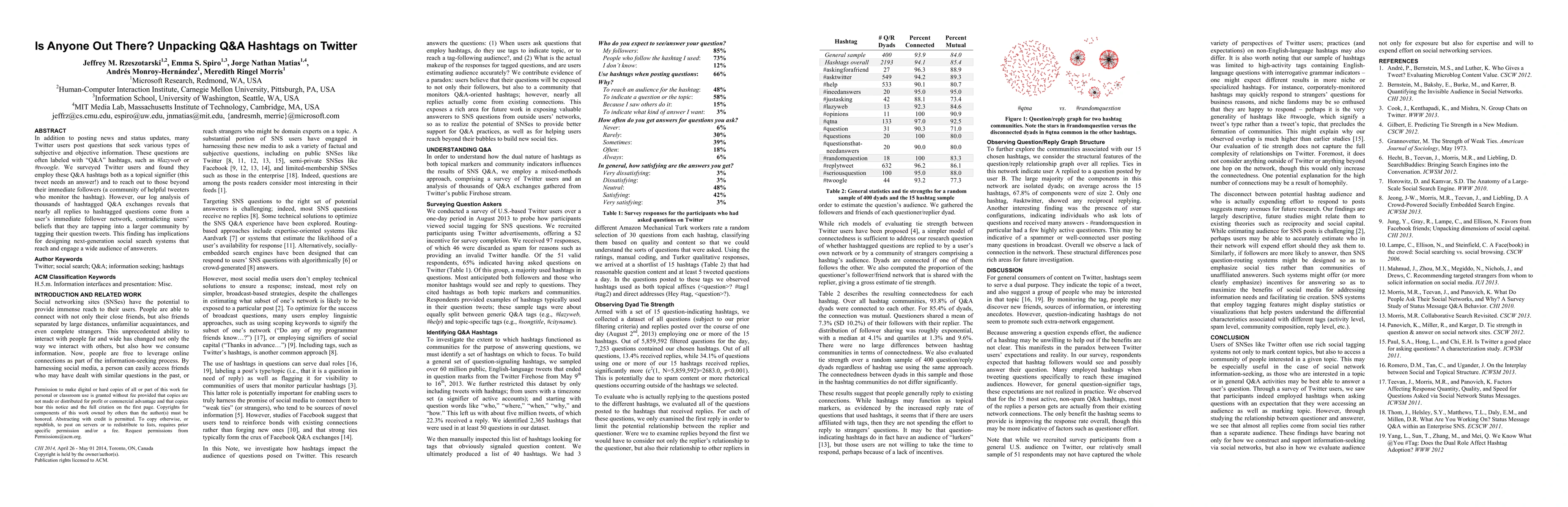 In addition to posting news and status updates, many Twitter users post questions that seek various types of subjective and objective information. These questions are often labeled with "Q&A" hashtags, such as #lazyweb or #twoogle. We surveyed Twitter users and found they employ these Q&A hashtags both as a topical signifier (this tweet needs an answer!) and to reach out to those beyond their immediate followers (a community of helpful tweeters who monitor the hashtag). However, our log analysis of thousands of hashtagged Q&A exchanges reveals that nearly all replies to hashtagged questions come from a user's immediate follower network, contradicting user's beliefs that they are tapping into a larger community by tagging their question tweets. This finding has implications for designing next-generation social search systems that reach and engage a wide audience of answerers.