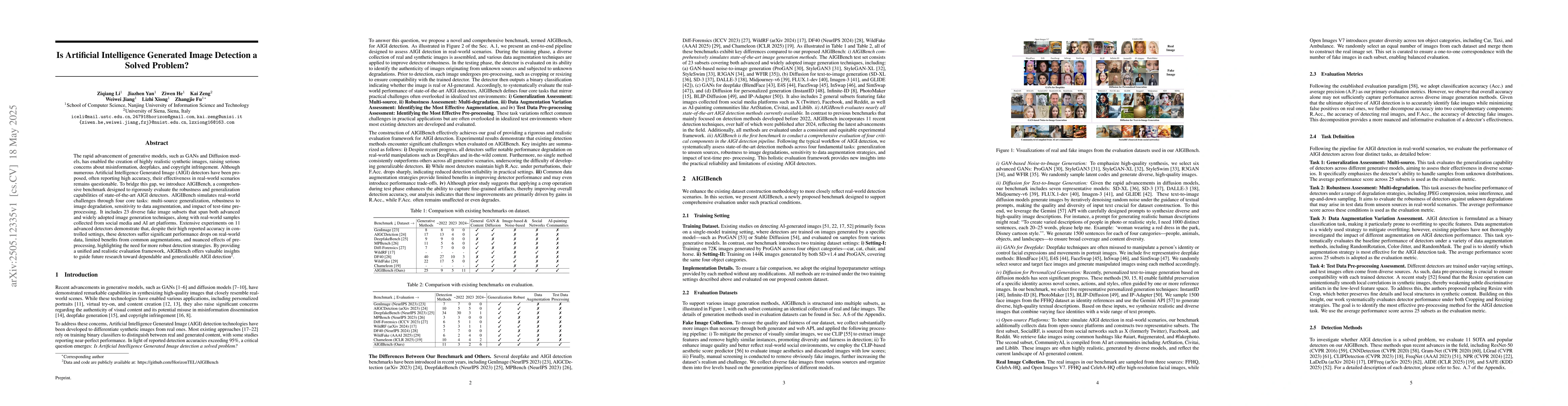 AIGIBench, a benchmark for evaluating AIGI detectors under real-world conditions, simulating challenges like multi-source generalization, image degradation, data augmentation, and test-time pre-processing.