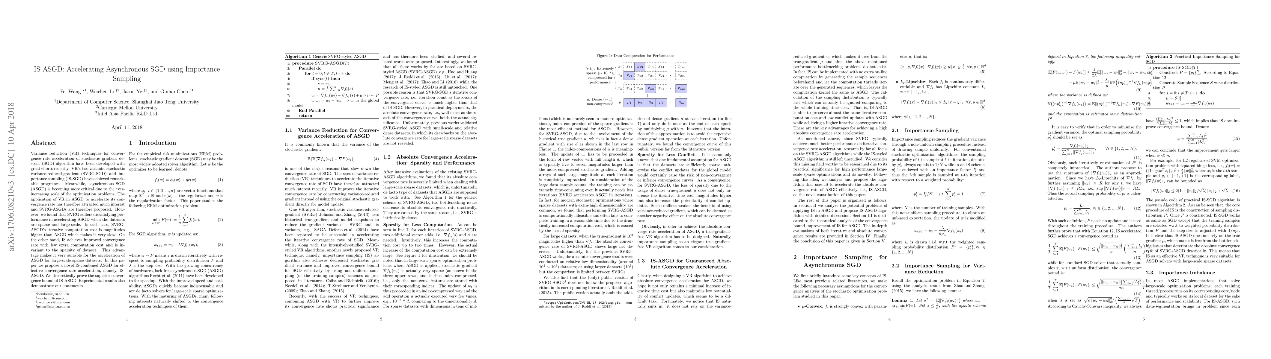 This paper proposes a novel variance reduction technique called IS-ASGD to accelerate asynchronous stochastic gradient descent (ASGD) for large-scale sparse datasets, achieving improved convergence rate with minimal extra computation cost.