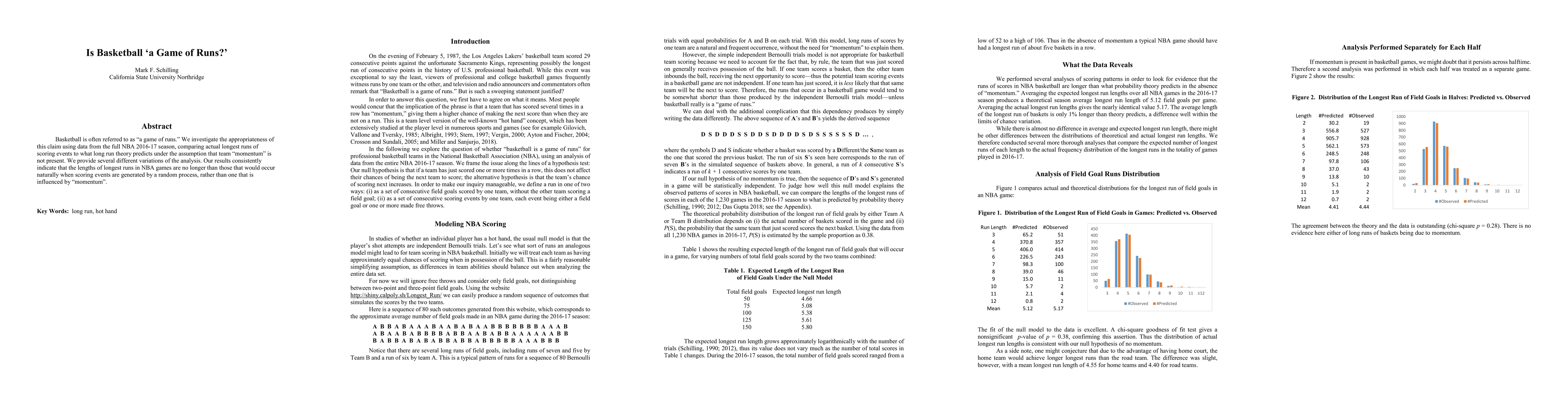 Basketball is often referred to as "a game of runs." We investigate the appropriateness of this claim using data from the full NBA 2016-17 season, comparing actual longest runs of scoring events to what long run theory predicts under the assumption that team "momentum" is not present. We provide several different variations of the analysis. Our results consistently indicate that the lengths of longest runs in NBA games are no longer than those that would occur naturally when scoring events are generated by a random process, rather than one that is influenced by "momentum".