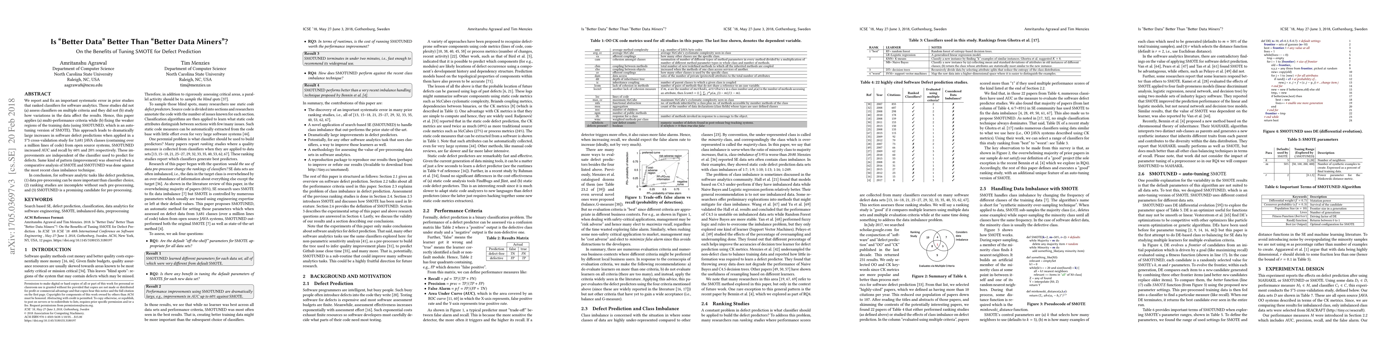 This paper corrects systematic errors in prior studies on classifier ranking for software analytics by applying multi-criteria tests and tuning the SMOTE technique (SMOTUNED). Results show significant improvements in defect prediction, indicating that data pre-processing, rather than classifier choice, is crucial for such tasks.
