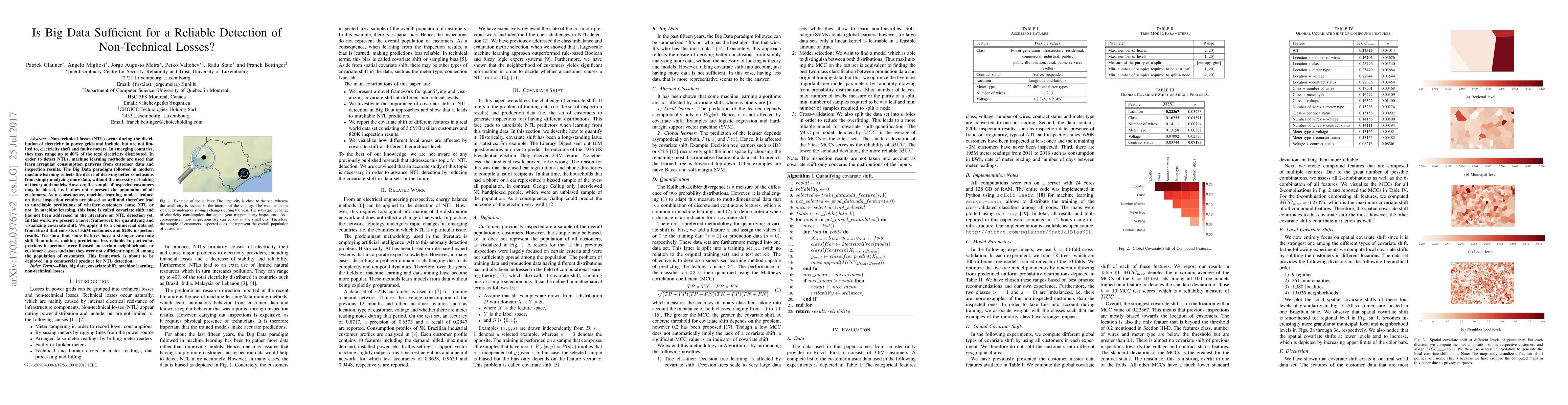 Non-technical losses (NTL) occur during the distribution of electricity in power grids and include, but are not limited to, electricity theft and faulty meters. In emerging countries, they may range up to 40% of the total electricity distributed. In order to detect NTLs, machine learning methods are used that learn irregular consumption patterns from customer data and inspection results. The Big Data paradigm followed in modern machine learning reflects the desire of deriving better conclusions from simply analyzing more data, without the necessity of looking at theory and models. However, the sample of inspected customers may be biased, i.e. it does not represent the population of all customers. As a consequence, machine learning models trained on these inspection results are biased as well and therefore lead to unreliable predictions of whether customers cause NTL or not. In machine learning, this issue is called covariate shift and has not been addressed in the literature on NTL detection yet. In this work, we present a novel framework for quantifying and visualizing covariate shift. We apply it to a commercial data set from Brazil that consists of 3.6M customers and 820K inspection results. We show that some features have a stronger covariate shift than others, making predictions less reliable. In particular, previous inspections were focused on certain neighborhoods or customer classes and that they were not sufficiently spread among the population of customers. This framework is about to be deployed in a commercial product for NTL detection.