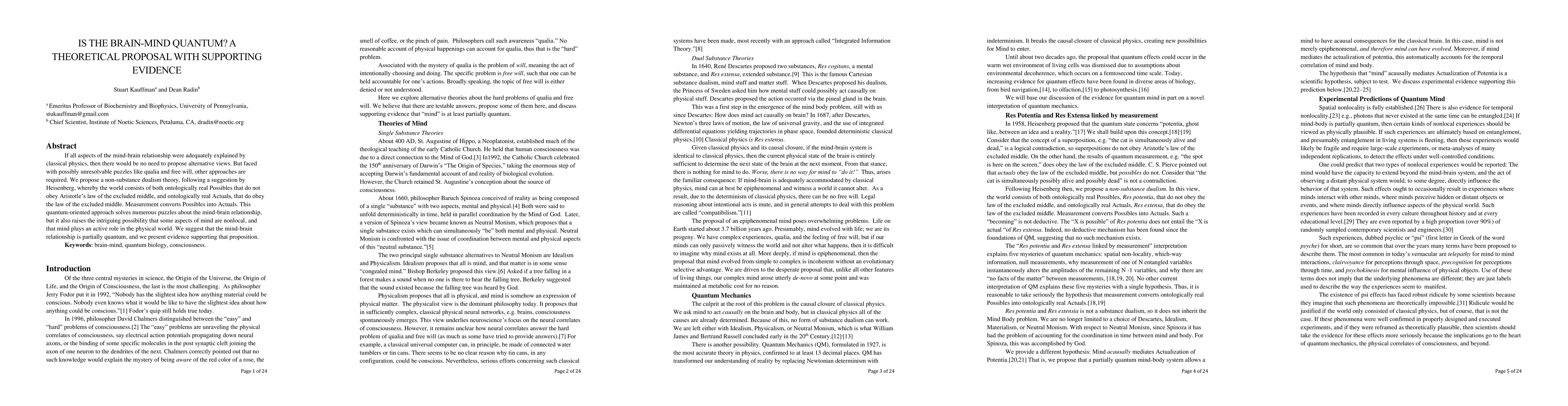 This paper proposes a non-substance dualism theory suggesting that the world comprises both quantum possibilities and classical realities, potentially explaining mind-brain interactions and suggesting non-local aspects of mind. Supporting evidence is provided to back the quantum approach to these complex issues.