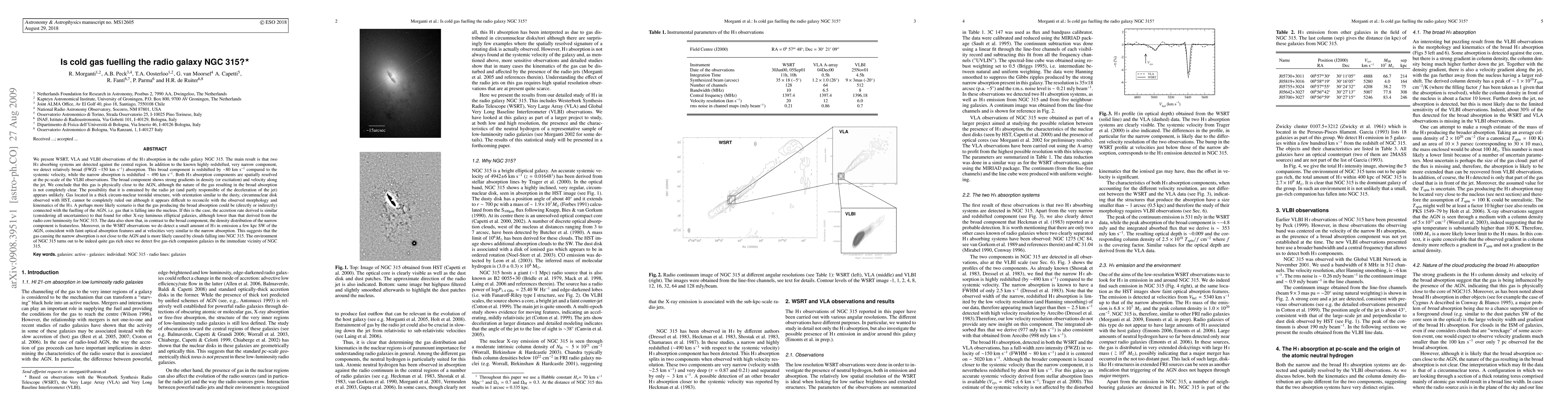 We present WSRT, VLA and VLBI observations of the HI absorption in the radio galaxy NGC 315. The main result is that two HI absorbing systems are detected against the central region. In addition to the known highly redshifted, very narrow component, we detect relatively broad (FWZI 150 km/s) absorption. This broad component is redshifted by ~80 km/s compared to the systemic velocity, while the narrow absorption is redshifted ~ 490 km/s. Both HI absorption components are spatially resolved at the pc-scale of the VLBI observations. The broad component shows strong gradients in density (or excitation) and velocity along the jet. We conclude that this gas is physically close to the AGN, although the nature of the gas resulting in the broad absorption is not completely clear. The possibility that it is entrained by the radio jet appears unlikely. Gas located in a thick circum-nuclear toroidal structure cannot be completely ruled out although it appears difficult to reconcile with the observed morphology and kinematics of the HI. A perhaps more likely scenario is that the gas producing the broad absorption could be (directly or indirectly) connected with the fuelling of the AGN, i.e. gas that is falling into the nucleus. If this is the case, the accretion rate derived is similar to that found for other X-ray luminous elliptical galaxies, although lower than that derived from the radio core luminosity for NGC 315. The density distribution of the narrow component is, featureless. Moreover, we detect a small amount of HI in emission a few kpc SW of the AGN, coincident with faint optical absorption features and at velocities very similar to the narrow absorption. This suggests that the gas causing the narrow absorption is not close to the AGN and is more likely caused by clouds falling into NGC 315.