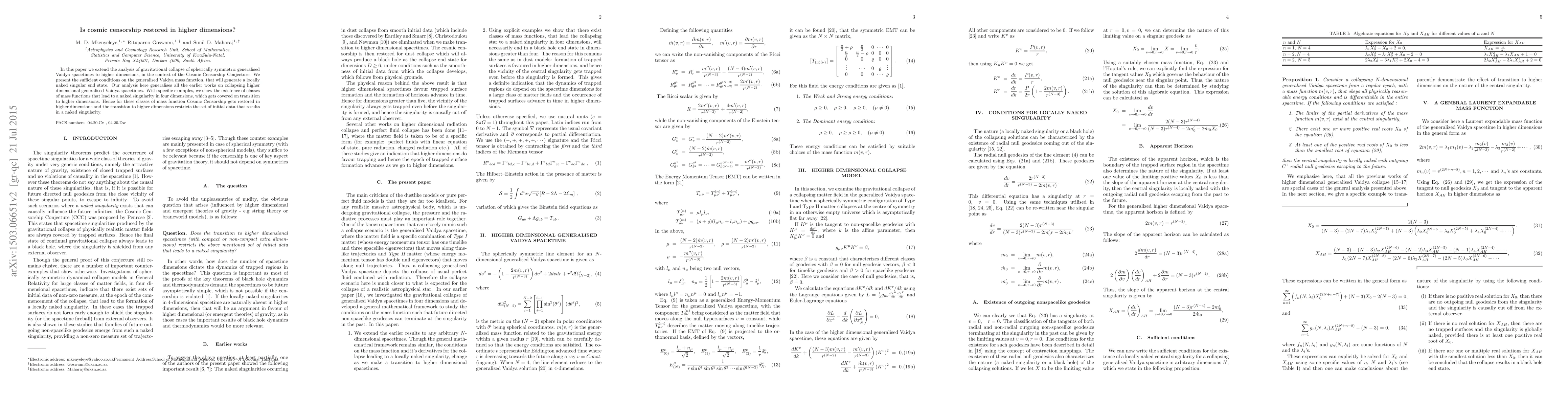 This paper investigates the Cosmic Censorship Conjecture in higher-dimensional generalised Vaidya spacetimes, finding conditions that generate locally naked singularities. It demonstrates that certain mass functions that produce naked singularities in four dimensions become covered in higher dimensions, thereby restoring cosmic censorship.
