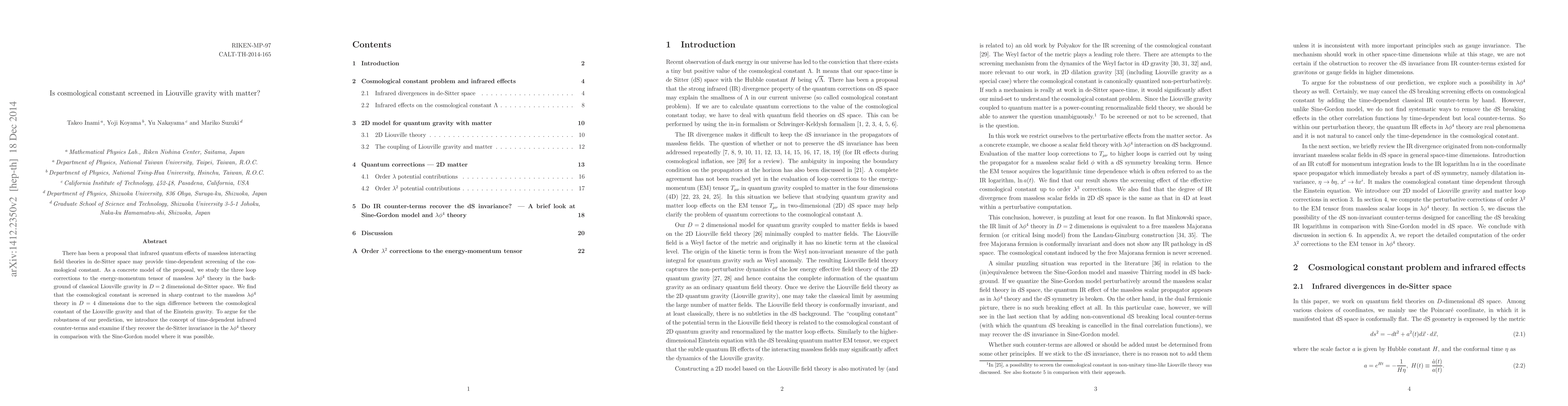 This paper investigates whether the cosmological constant can be screened in Liouville gravity with matter, finding that it is screened in 2D de-Sitter space due to a sign difference in cosmological constants, contrasting with the behavior in 4D. The study introduces time-dependent infrared counter-terms to support the robustness of this prediction.