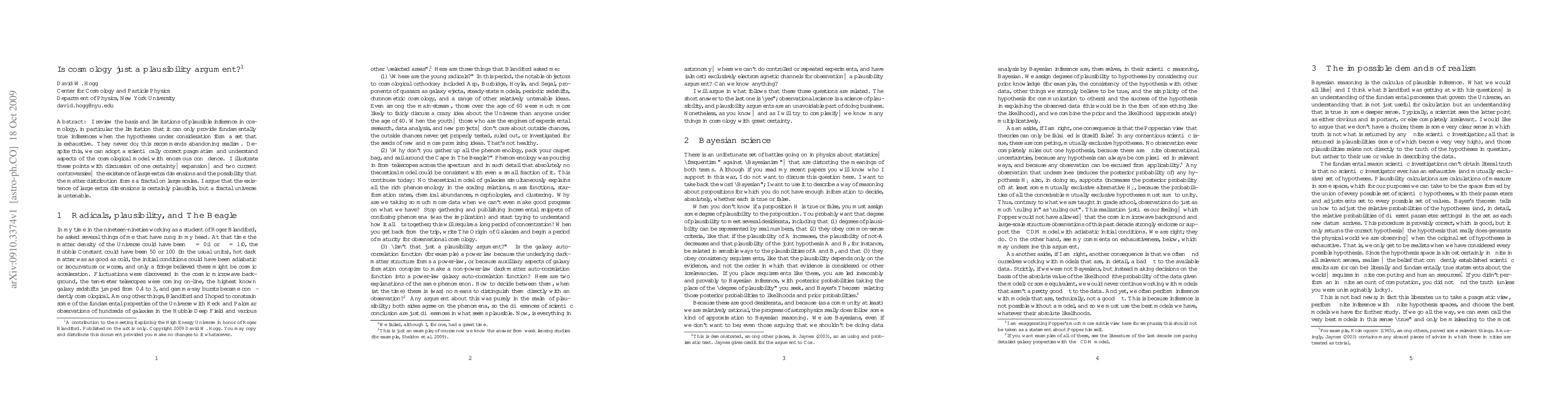 I review the basis and limitations of plausible inference in cosmology, in particular the limitation that it can only provide fundamentally true inferences when the hypotheses under consideration form a set that is exhaustive. They never do; this recommends abandoning realism. Despite this, we can adopt a scientifically correct pragmatism and understand aspects of the cosmological model with enormous confidence. I illustrate these points with discussion of one certainty--expansion--and two current controversies--the existence of large extra dimensions and the possibility that the matter distribution forms a fractal on large scales. I argue that the existence of large extra dimensions is certainly plausible, but a fractal universe is untenable.