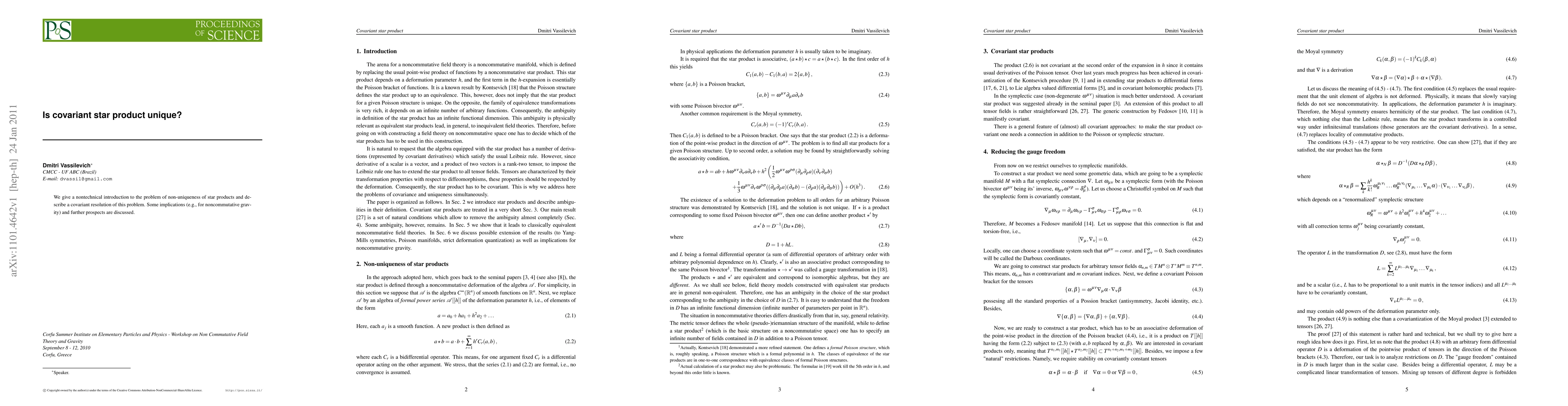 Summary: This paper introduces the issue of non-uniqueness in star products and proposes a covariant solution to this problem. It also discusses implications for noncommutative gravity and future research directions.