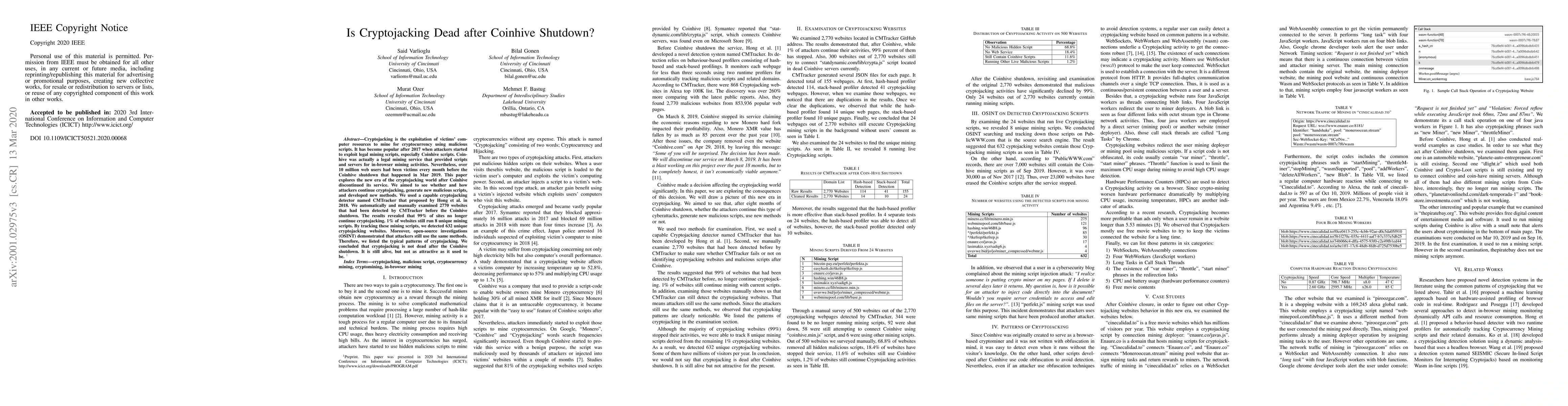 The research reveals that while the shutdown of Coinhive, a legal cryptojacking script provider, in 2019 significantly reduced cryptojacking activities, it didn't eradicate it. Only 1% of 2770 examined websites continued using 8 unique mining scripts, and open-source investigations identified 632 new cryptojacking sites. The study concludes that although cryptojacking persists, its prevalence and attractiveness have waned post-Coinhive shutdown.