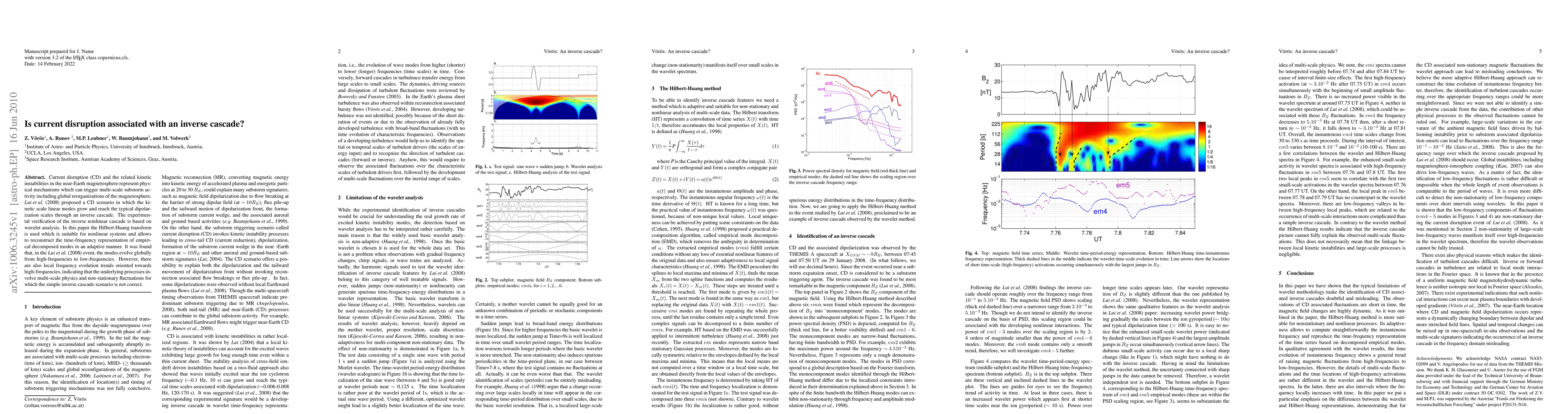 Current disruption (CD) and the related kinetic instabilities in the near-Earth magnetosphere represent physical mechanisms which can trigger multi-scale substorm activity including global reorganizations of the magnetosphere. Lui et al. (2008) proposed a CD scenario in which the kinetic scale linear modes grow and reach the typical dipolarization scales through an inverse cascade. The experimental verification of the inverse nonlinear cascade is based on wavelet analysis. In this paper the Hilbert-Huang transform is used which is suitable for nonlinear systems and allows to reconstruct the time-frequency representation of empirical decomposed modes in an adaptive manner. It was found that, in the Lui et al. (2008) event, the modes evolve globally from high-frequencies to low-frequencies. However, there are also local frequency evolution trends oriented towards high-frequencies, indicating that the underlying processes involve multi-scale physics and non-stationary fluctuations for which the simple inverse cascade scenario is not correct.