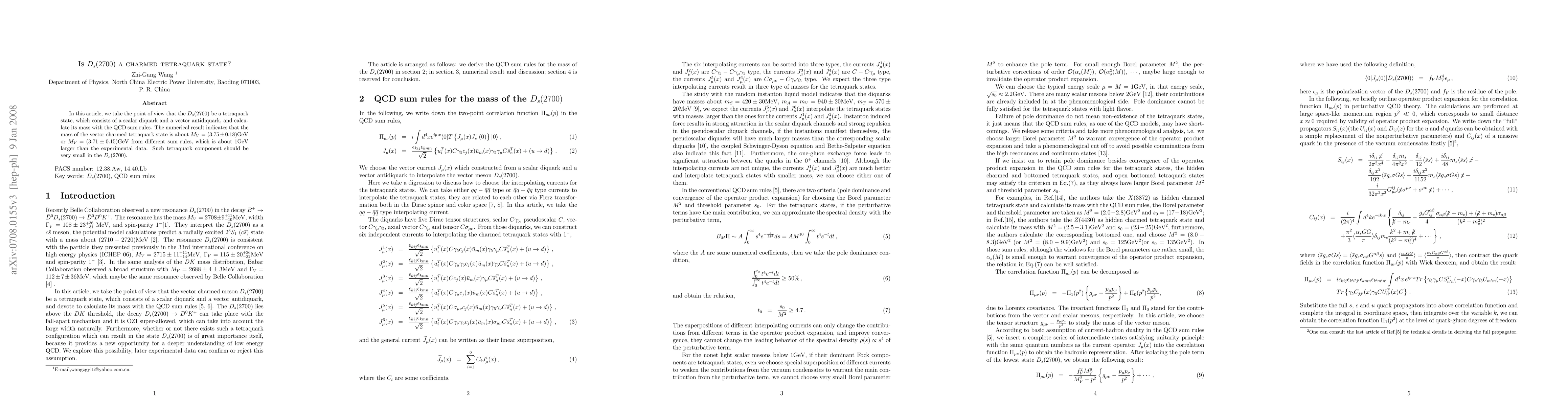Researchers investigate whether the $D_s(2700)$ is a charmed tetraquark state, calculating its mass using QCD sum rules and finding it is about 1GeV larger than experimental data.