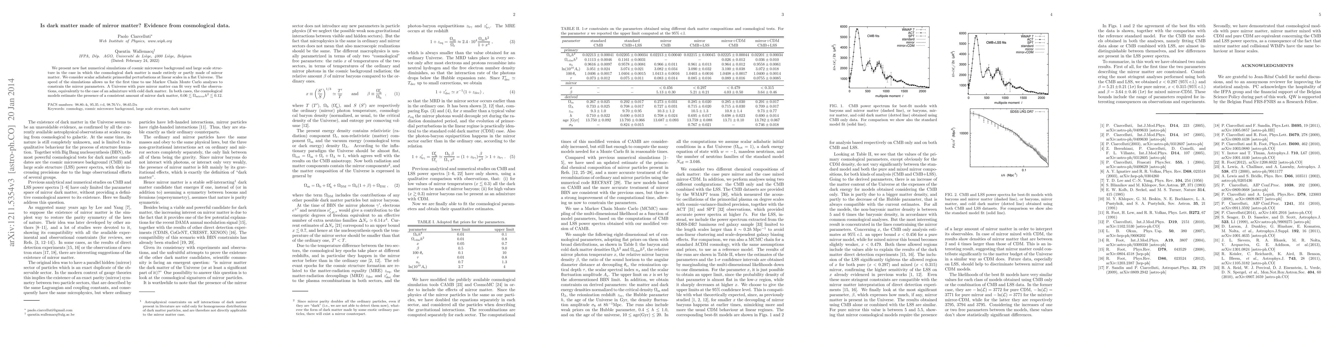 This paper uses advanced numerical simulations to explore if dark matter could be composed of mirror matter, finding that a universe with either pure mirror matter or a mix with cold dark matter fits observational data well. The study indicates a consistent amount of mirror dark matter, with $\Omega_{\rm mirror} h^2$ ranging from 0.06 to 0.12.