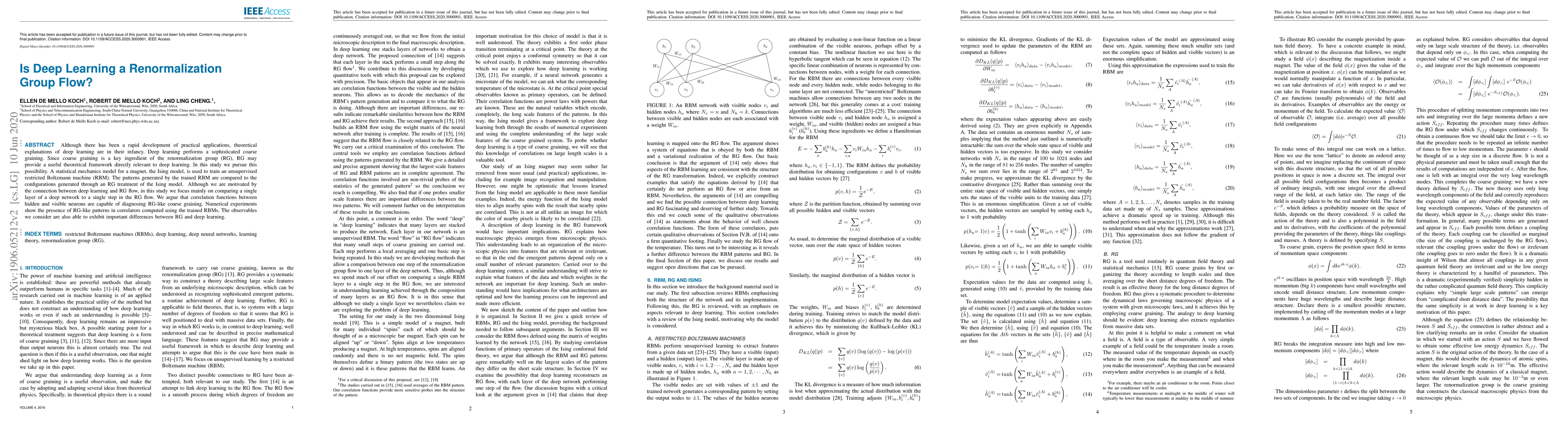 A study explores whether deep learning can be understood through the lens of renormalization group flow, finding evidence of RG-like patterns in correlation functions between hidden and visible neurons in trained restricted Boltzmann machines.