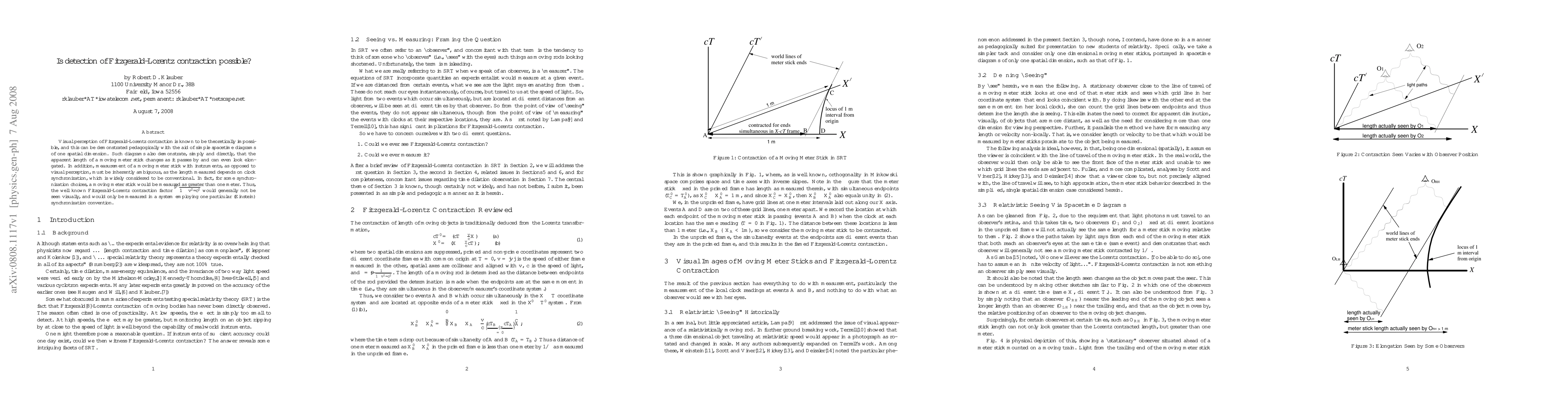 This paper argues that visual detection of Fitzgerald-Lorentz contraction is theoretically impossible, using spacetime diagrams to show that moving objects can appear elongated. It also highlights that measurements depend on clock synchronization, which is conventional, thus making the contraction factor observable only under specific conditions.