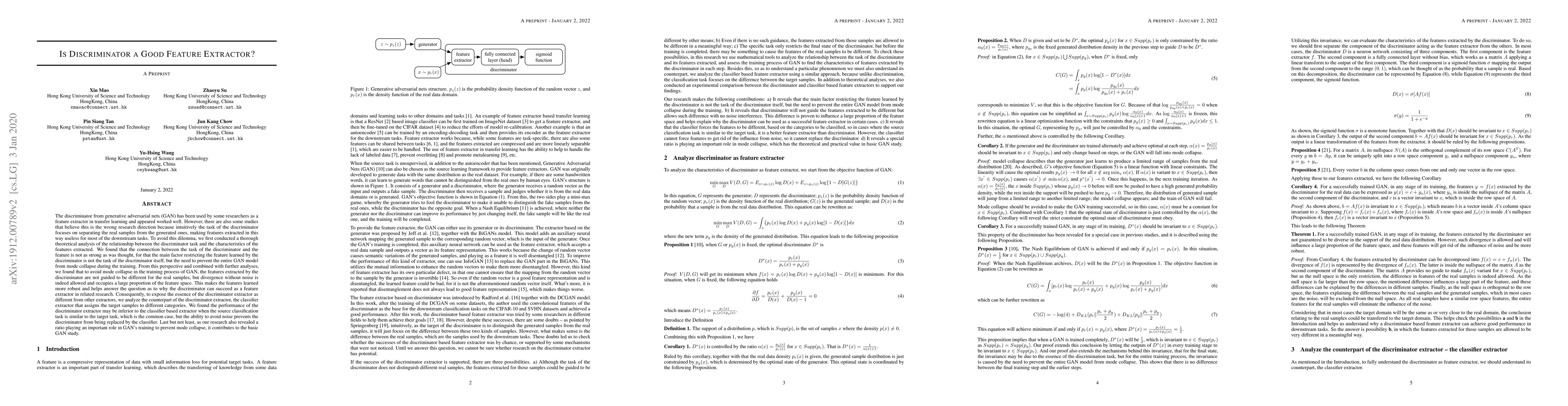The discriminator from generative adversarial nets (GAN) has been used by researchers as a feature extractor in transfer learning and appeared worked well. However, there are also studies that believe this is the wrong research direction because intuitively the task of the discriminator focuses on separating the real samples from the generated ones, making features extracted in this way useless for most of the downstream tasks. To avoid this dilemma, we first conducted a thorough theoretical analysis of the relationship between the discriminator task and the features extracted. We found that the connection between the task of the discriminator and the feature is not as strong as was thought, for that the main factor restricting the feature learned by the discriminator is not the task, but is the need to prevent the entire GAN model from mode collapse during the training. From this perspective and combined with further analyses, we found that to avoid mode collapse, the features extracted by the discriminator are not guided to be different for the real samples, but divergence without noise is indeed allowed and occupies a large proportion of the feature space. This makes the features more robust and helps answer the question as to why the discriminator can succeed as a feature extractor in related research. Consequently, to expose the essence of the discriminator extractor as different from other extractors, we analyze the counterpart of the discriminator extractor, the classifier extractor that assigns the target samples to different categories. We found the performance of the discriminator extractor may be inferior to the classifier based extractor when the source classification task is similar to the target task, which is the common case, but the ability to avoid noise prevents the discriminator from being replaced by the classifier.