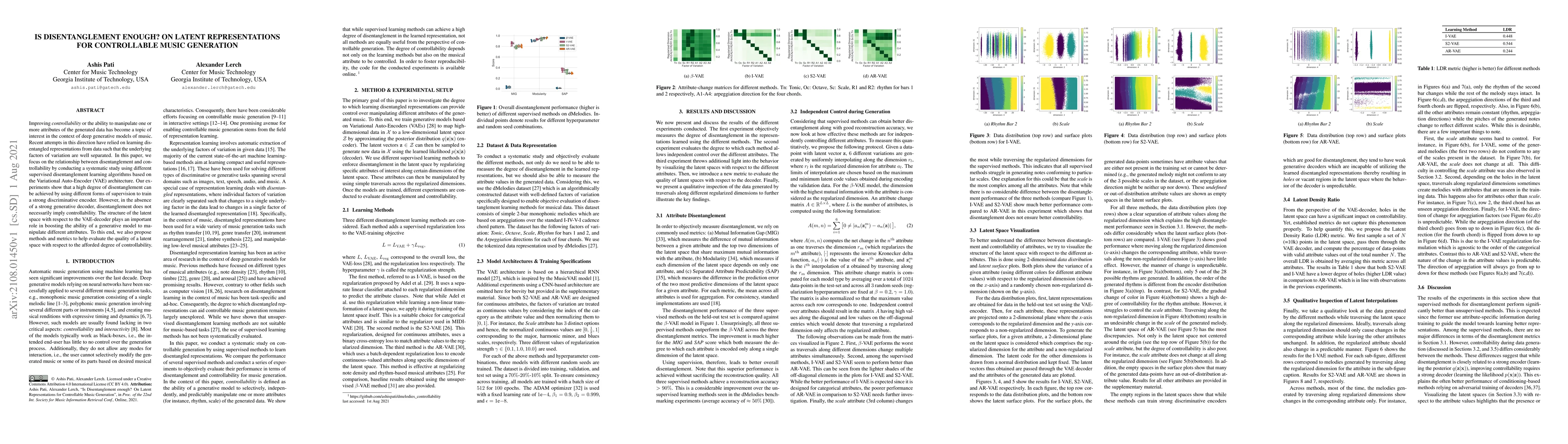 This paper investigates whether disentangled representations in Variational Auto-Encoders (VAEs) are sufficient for controllable music generation. While high disentanglement can be achieved through supervised learning, it does not guarantee controllability without a strong generative decoder, highlighting the importance of the latent space structure for attribute manipulation.