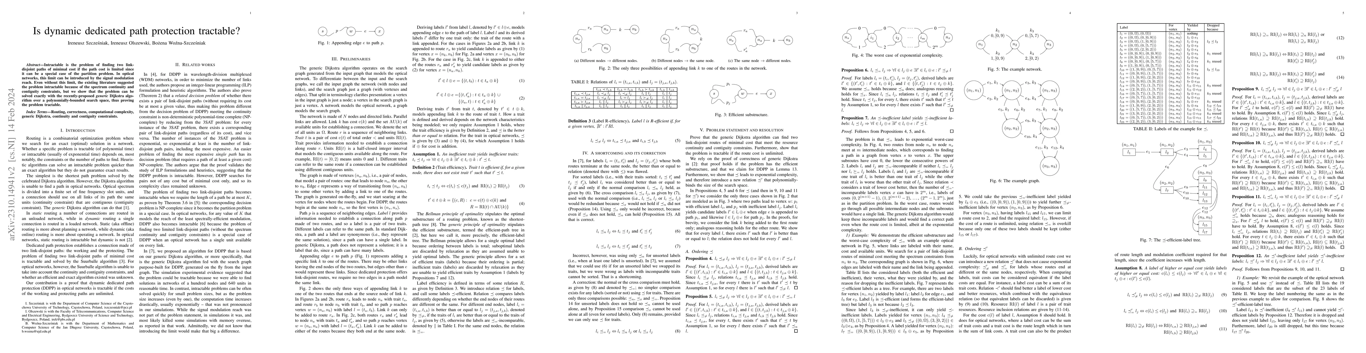 Intractable is the problem of finding two link-disjoint paths of minimal cost if the path cost is limited since it can be a special case of the partition problem. In optical networks, this limit can be introduced by the signal modulation reach. Even without this limit, the existing literature suggested the problem intractable because of the spectrum continuity and contiguity constraints, but we show that the problem can be solved exactly with the recently-proposed generic Dijkstra algorithm over a polynomially-bounded search space, thus proving the problem tractable.