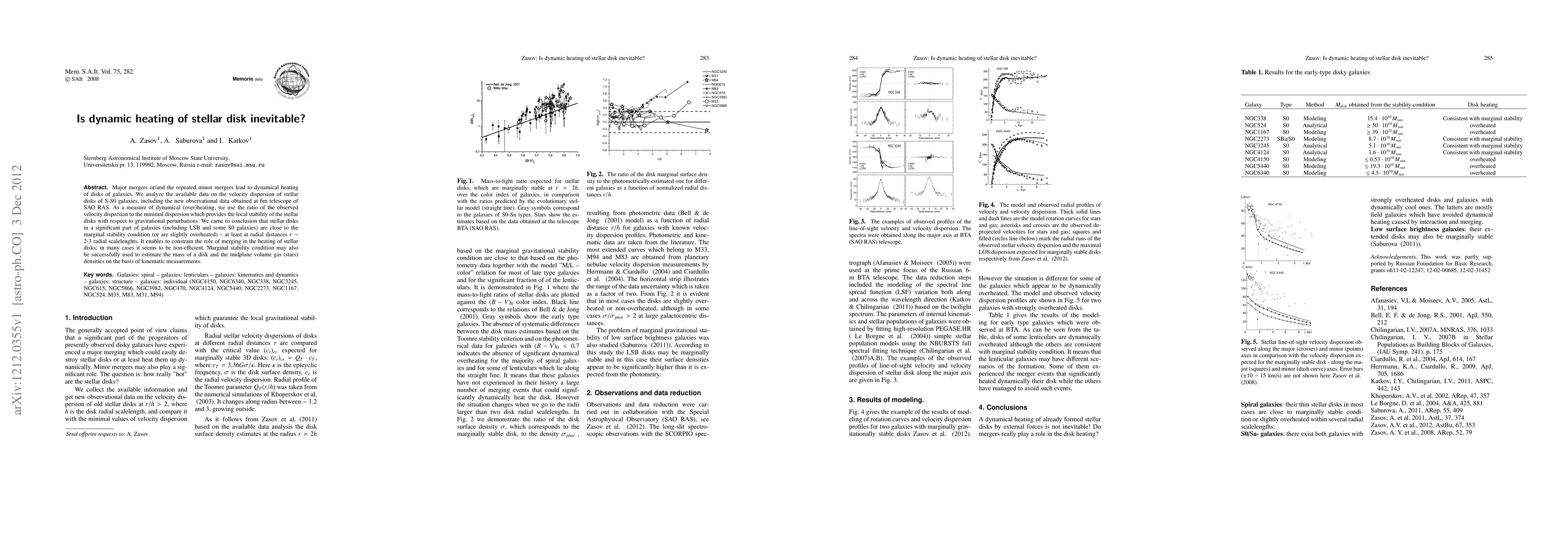 Galaxy stellar disks are found to be near their stability limits due to mergers, suggesting a non-efficient heating mechanism in many cases. This finding can help estimate galaxy masses and gas densities through kinematic measurements.