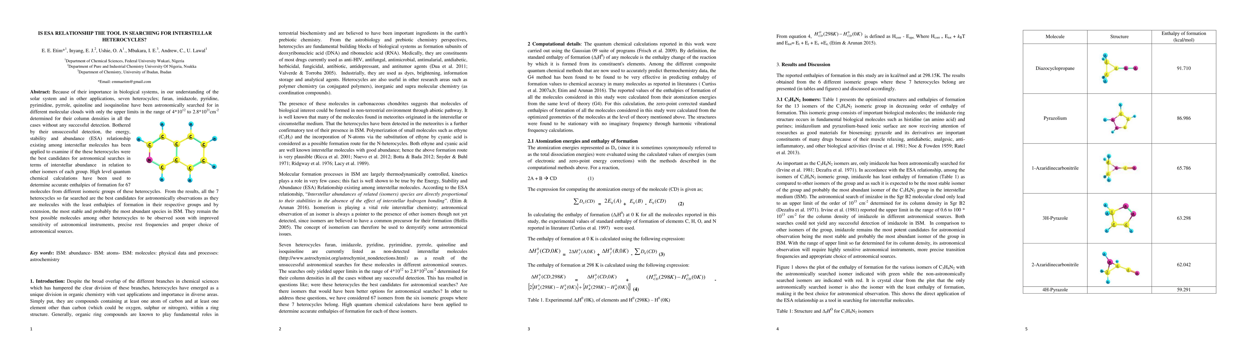 Researchers used quantum chemical calculations to find that seven heterocycles are the best candidates for astronomical detection due to their low enthalpies of formation, making them stable and abundant in interstellar space.