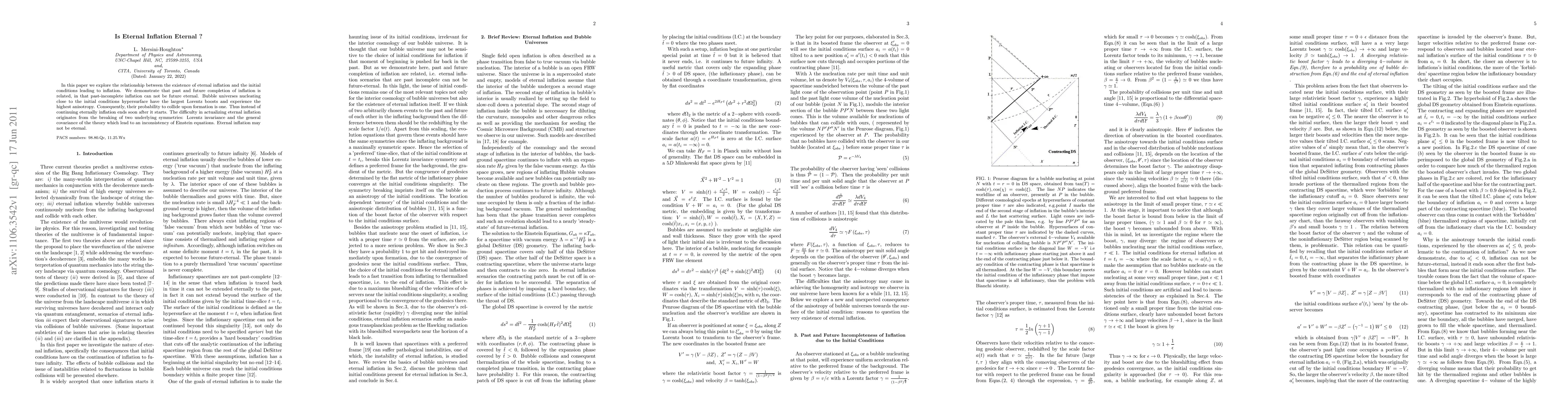 In this paper we explore the relationship between the existence of eternal inflation and the initial conditions leading to inflation. We demonstrate that past and future completion of inflation is related, in that past-incomplete inflation can not be future eternal. Bubble universes nucleating close to the initial conditions hypersurface have the largest Lorentz boosts and experience the highest anisotropy. Consequently, their probability to collide upon formation is one. Thus instead of continuing eternally inflation ends soon after it starts. The difficulty in actualizing eternal inflation originates from the breaking of two underlying symmetries: Lorentz invariance and the general covariance of the theory which lead to an inconsistency of Einstein equations. Eternal inflation may not be eternal.