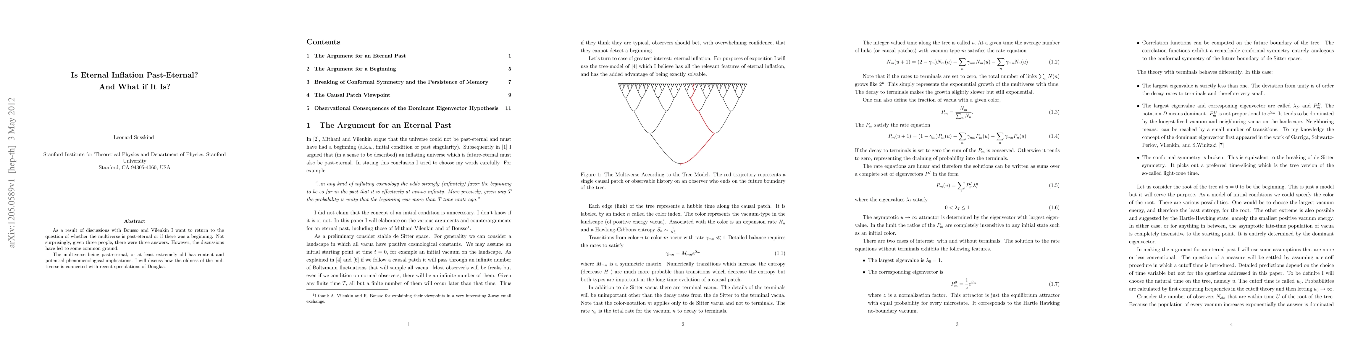 This paper explores whether eternal inflation implies a past-eternal multiverse and its phenomenological implications, drawing on discussions with Bousso and Vilenkin. It finds common ground in the possibility of a very old multiverse, linking it to recent speculations by Douglas.