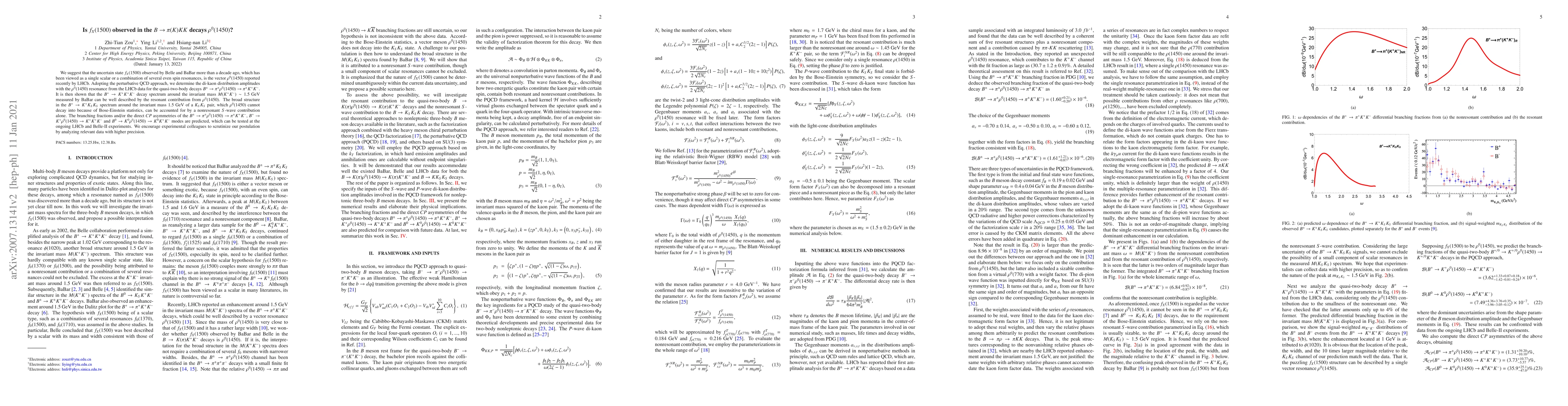 We suggest that the uncertain state $f_X(1500)$ observed by Belle and BaBar more than a decade ago, which has been viewed as a single scalar or a combination of several even spin resonances, is the vector $\rho^0(1450)$ reported recently by LHCb. Adopting the perturbative QCD approach, we determine the di-kaon distribution amplitudes with the $\rho^0(1450)$ resonance from the LHCb data for the quasi-two-body decays $B^{\pm}\to \pi^{\pm}\rho^0(1450)\to\pi^{\pm}K^+K^-$. It is then shown that the $B^+ \to K^+K^+K^-$ decay spectrum around the invariant mass $M(K^+K^-)\sim 1.5~\rm GeV$ measured by BaBar can be well described by the resonant contribution from $\rho^0(1450)$. The broad structure in the $B^{+}\to K^{+} K_SK_S$ spectrum around the invariant mass $1.5~\rm GeV$ of a $K_SK_S$ pair, which $\rho^0(1450)$ cannot decay into because of Bose-Einstein statistics, can be accounted for by a nonresonant $S$-wave contribution alone. The branching fractions and/or the direct $CP$ asymmetries of the $B^{\pm}\to \pi^{\pm}\rho^0(1450)\to\pi^{\pm}K^+K^-$, $B^{+}\to K^{+}\rho^0(1450)\to K^+K^+K^-$ and $B^{0}\to K^{0}\rho^0(1450)\to K^0K^+K^-$ modes are predicted, which can be tested at the ongoing LHCb and Belle-II experiments. We encourage experimental colleagues to scrutinize our postulation by analyzing relevant data with higher precision.