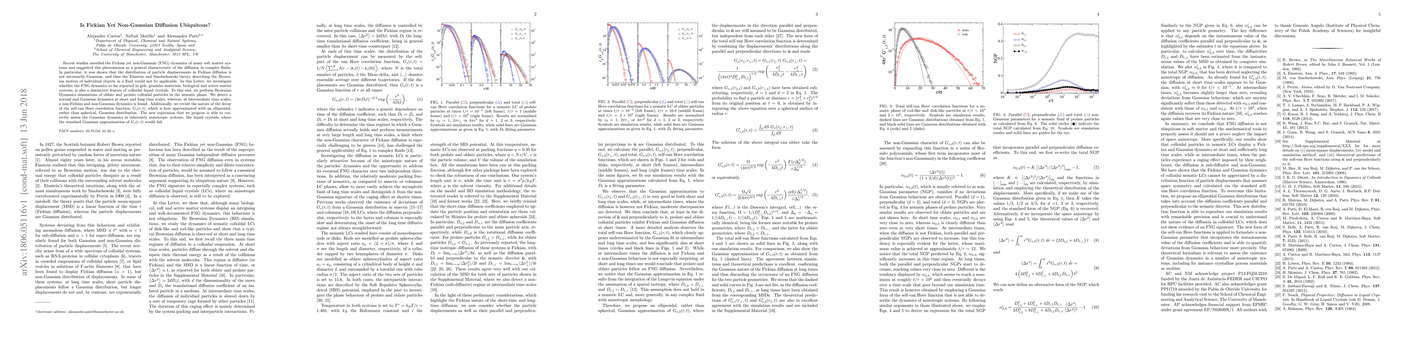 This paper investigates whether Fickian yet non-Gaussian diffusion, previously observed in various soft matter systems, is also present in colloidal liquid crystals. Simulations reveal Gaussian dynamics at short and long times but non-Fickian and non-Gaussian behavior at intermediate times, along with a new ellipsoidal Gaussian approximation for the self-van Hove correlation function.