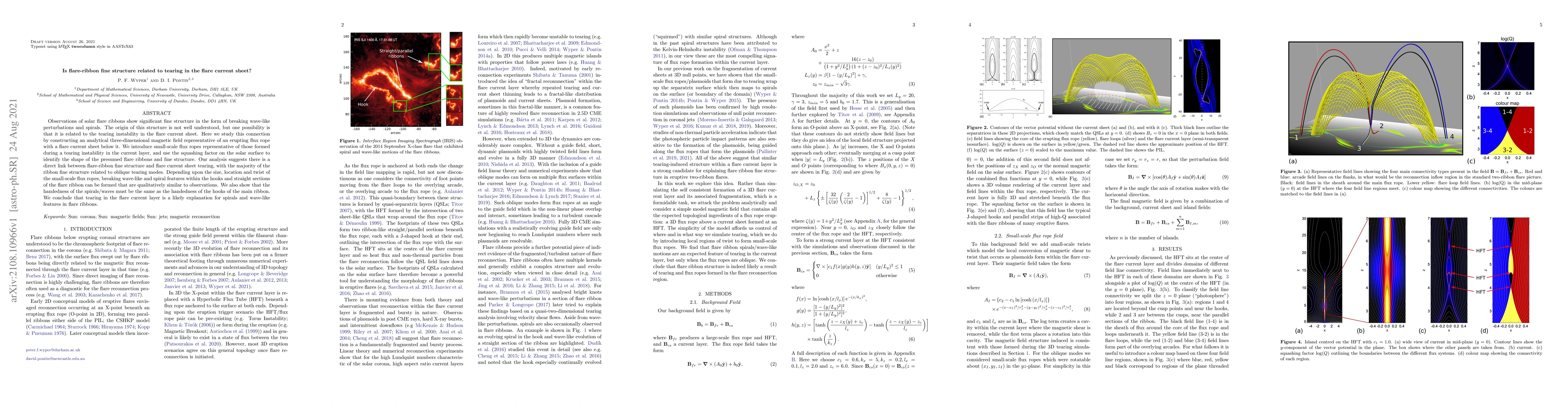 This study investigates the relationship between flare-ribbon fine structure and tearing in the flare current sheet, suggesting a direct link where fine structure is formed by oblique tearing modes. The analysis shows that the handedness of spirals/waves in flare ribbons correlates with the main ribbon's hooks, supporting the hypothesis that tearing in the current sheet explains observed fine structures.