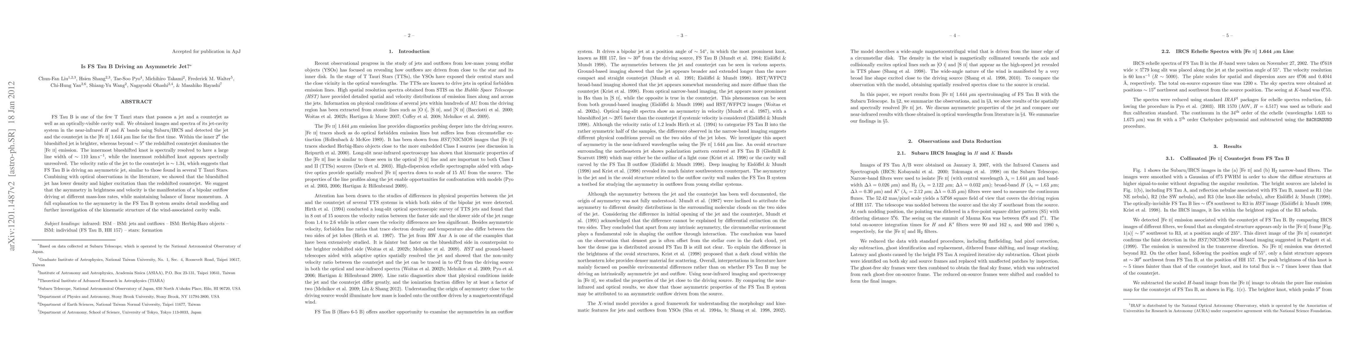Researchers studied T Tauri star FS Tau B and found evidence of an asymmetric jet, with a higher velocity blueshifted jet dominating at closer distances.