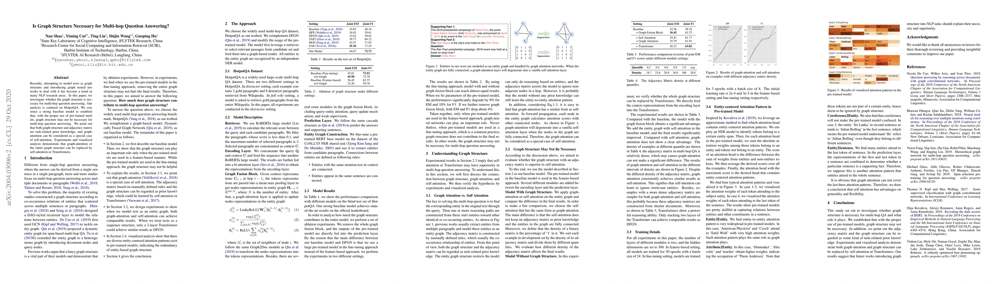 This paper explores if graph structure is essential for multi-hop question answering, using HotpotQA as a testbed. It finds that with suitable pre-trained models, graph structures may not be necessary, as self-attention or Transformers can substitute graph-attention and adjacency matrices effectively.