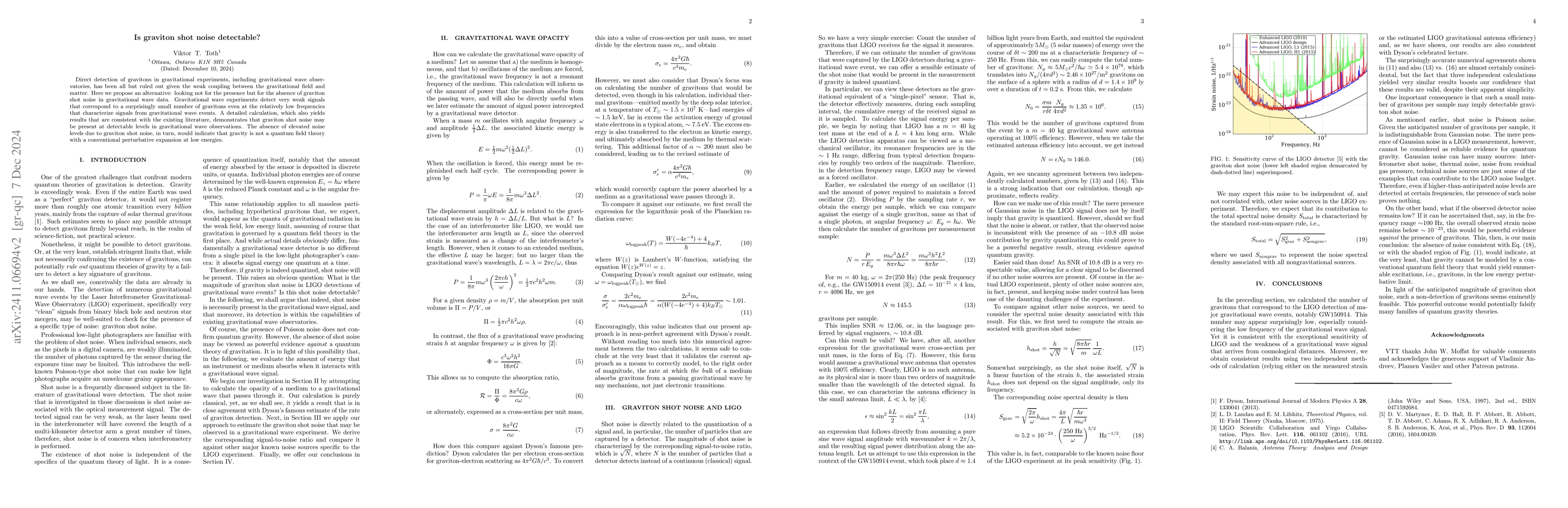 This paper proposes detecting the absence of graviton shot noise in gravitational wave data as an alternative to direct graviton detection, arguing that its presence could indicate gravitational signals with unexpectedly low graviton numbers and suggest that gravity is not a conventional quantum field theory at low energies.