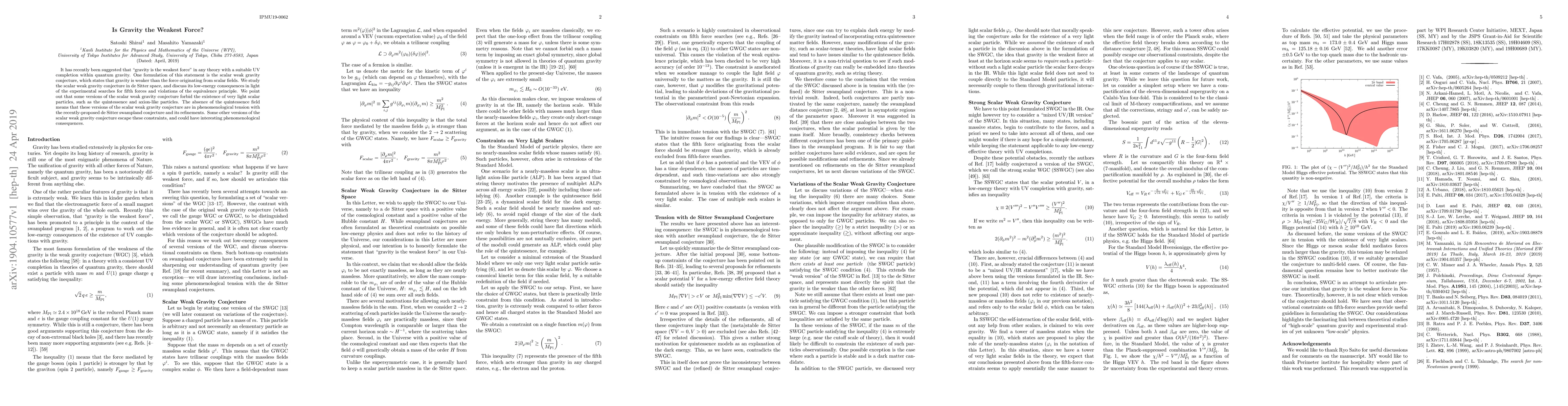 It has recently been suggested that "gravity is the weakest force" in any theory with a suitable UV completion within quantum gravity. One formulation of this statement is the scalar weak gravity conjecture, which states that gravity is weaker than the force originating from scalar fields. We study the scalar weak gravity conjecture in de Sitter space, and discuss its low-energy consequences in light of the experimental searches for fifth forces and violations of the equivalence principle. We point out that some versions of the scalar weak gravity conjecture forbid the existence of very light scalar particles, such as the quintessence and axion-like particles. The absence of the quintessence field means that these versions of the scalar weak gravity conjecture are in phenomenological tension with the recently-proposed de Sitter swampland conjecture and its refinements. Some other versions of the scalar weak gravity conjecture escape these constraints, and could have interesting phenomenological consequences.