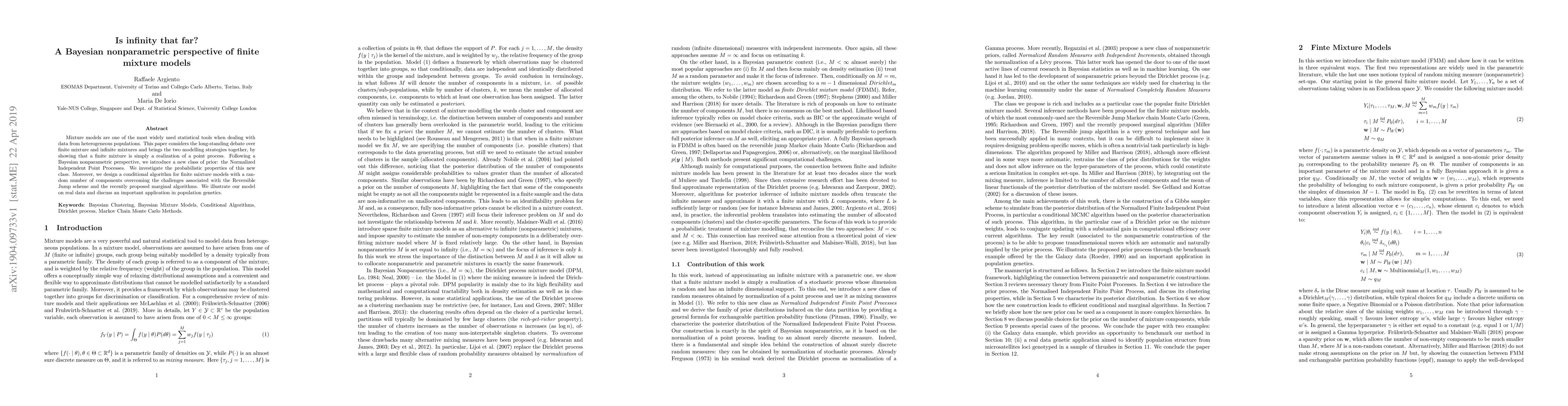 This paper merges finite and infinite mixture models by viewing finite mixtures as realizations of point processes, introducing a new Bayesian nonparametric prior called Normalized Independent Point Processes. It also proposes a novel algorithm for finite mixture models with a random number of components, demonstrating its effectiveness on real data and highlighting its application in population genetics.