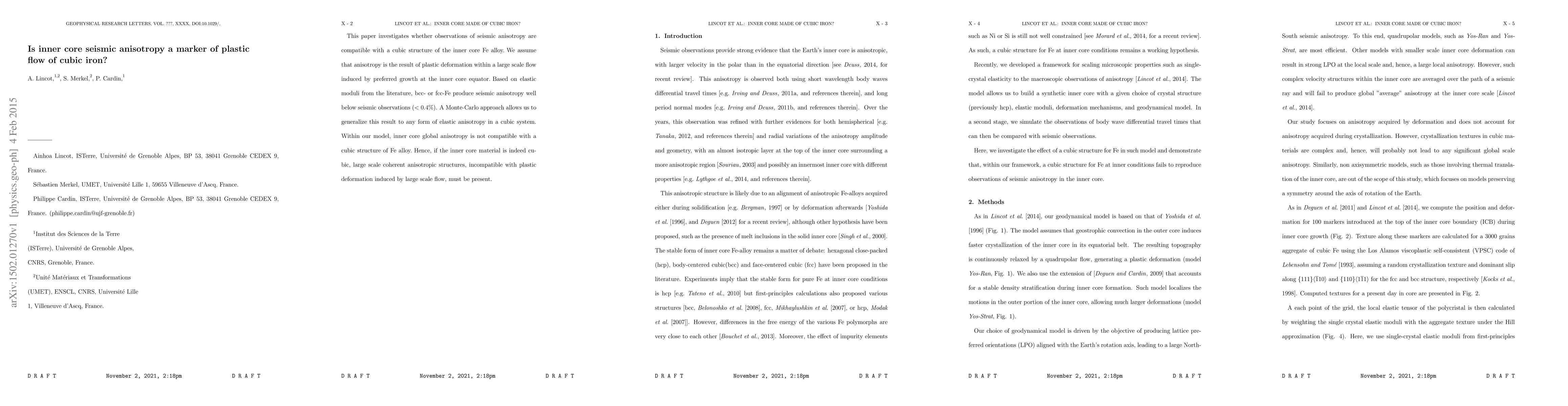 This paper finds that seismic anisotropy in the inner core cannot be explained by a cubic Fe alloy structure due to insufficient anisotropy from plastic deformation. If the inner core is cubic, it implies the presence of large-scale coherent anisotropic structures not accounted for by plastic flow.