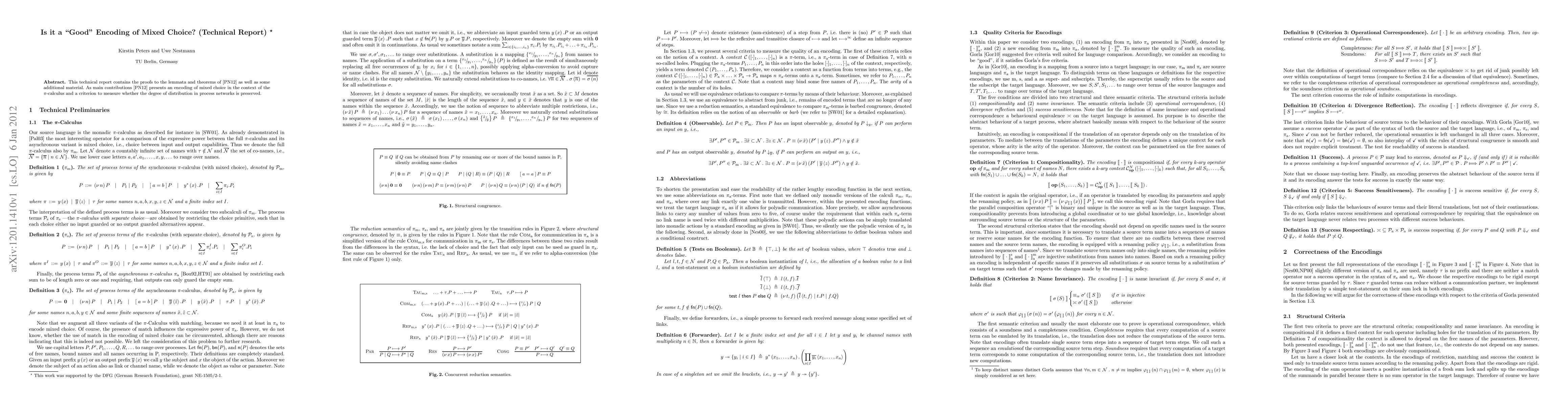 This technical report contains the proofs to the lemmata and theorems of [PN12] as well as some additional material. As main contributions [PN12] presents an encoding of mixed choice in the context of the pi-calculus and a criterion to measure whether the degree of distribution in process networks is preserved.