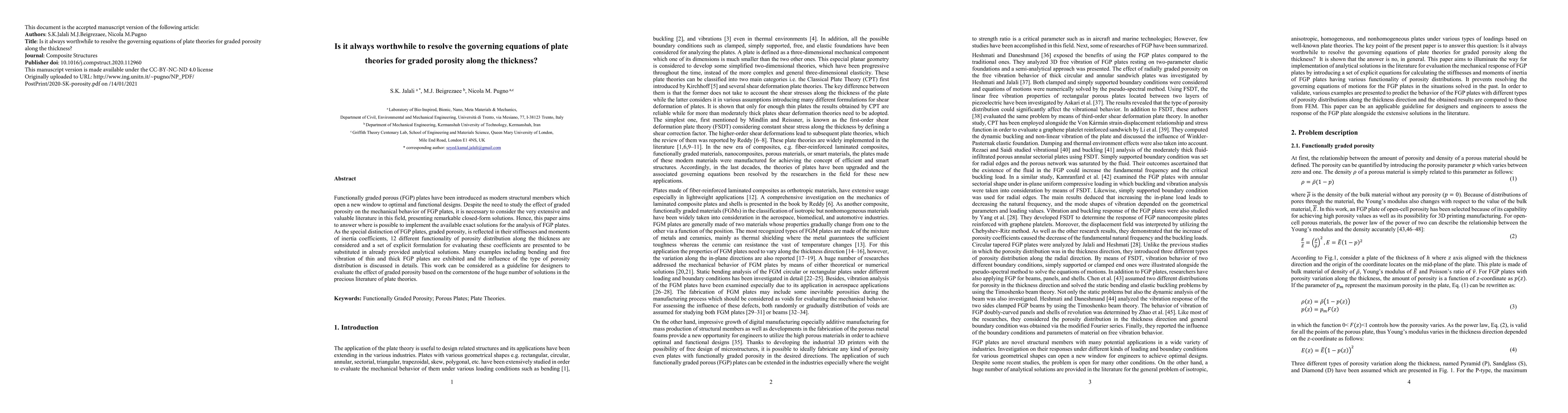 This paper investigates the applicability of existing closed-form solutions for functionally graded porous plates, exploring the impact of graded porosity on mechanical behavior. It provides explicit formulations for porosity distribution coefficients and discusses their influence on bending and free vibration, serving as a guideline for designers.