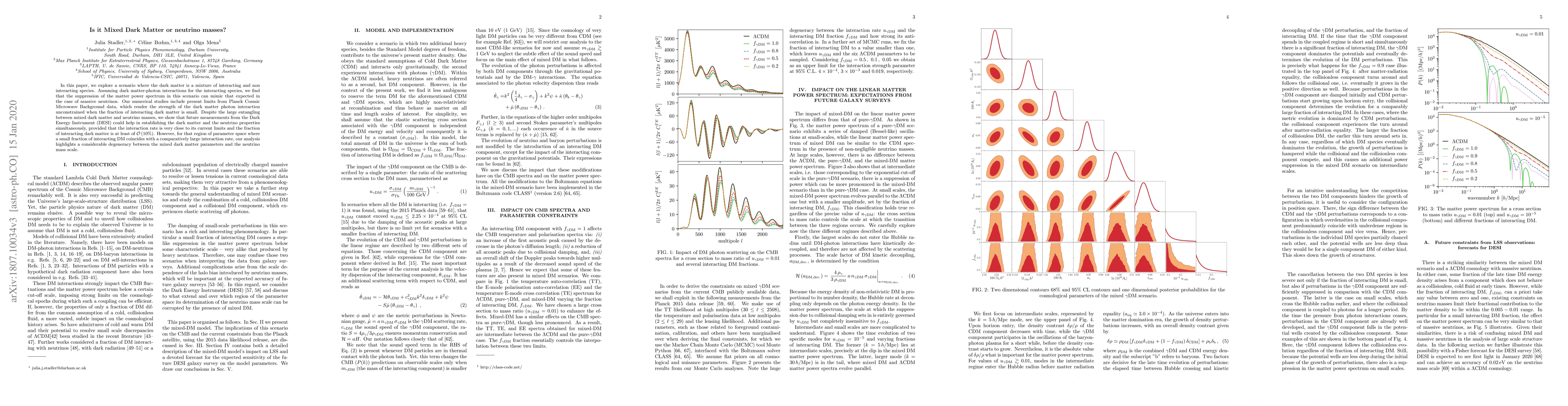 In this paper, we explore a scenario where the dark matter is a mixture of interacting and non interacting species. Assuming dark matter-photon interactions for the interacting species, we find that the suppression of the matter power spectrum in this scenario can mimic that expected in the case of massive neutrinos. Our numerical studies include present limits from Planck Cosmic Microwave Background data, which render the strength of the dark matter photon interaction unconstrained when the fraction of interacting dark matter is small. Despite the large entangling between mixed dark matter and neutrino masses, we show that future measurements from the Dark Energy Instrument (DESI) could help in establishing the dark matter and the neutrino properties simultaneously, provided that the interaction rate is very close to its current limits and the fraction of interacting dark matter is at least of $\mathcal{O}\left(10\%\right)$. However, for that region of parameter space where a small fraction of interacting DM coincides with a comparatively large interaction rate, our analysis highlights a considerable degeneracy between the mixed dark matter parameters and the neutrino mass scale.