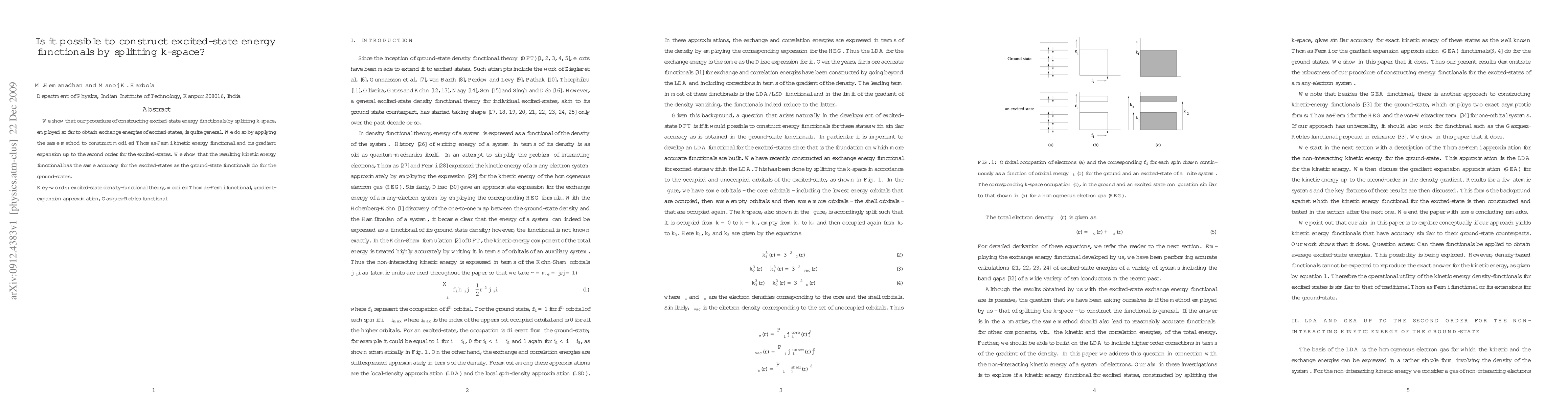 This paper demonstrates that splitting k-space is a general method for constructing excited-state energy functionals, successfully applied to derive modified Thomas-Fermi kinetic energy functionals and their gradient expansions, achieving comparable accuracy for excited states as ground-state functionals.