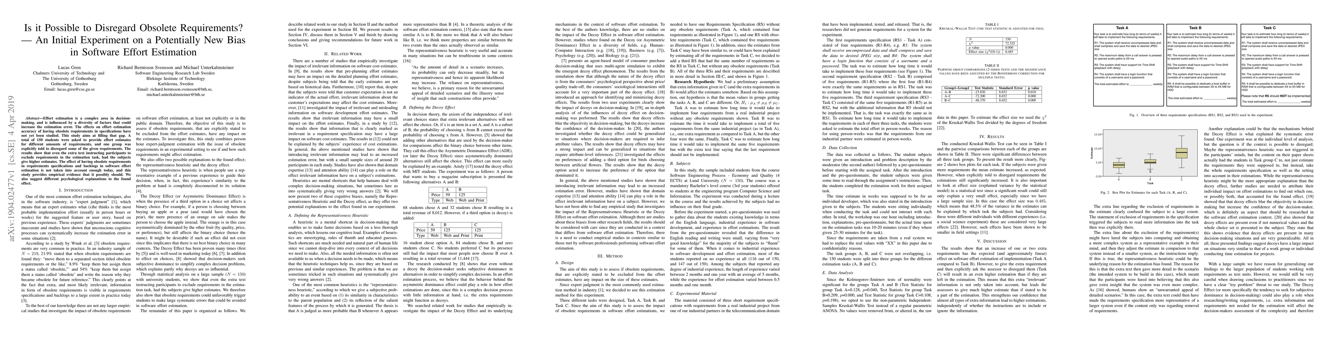 This study reveals that even when instructed to disregard certain requirements, software effort estimation increases when obsolete requirements are present. The experiment with 150 students suggests that the impact of outdated specs in estimation is underestimated and proposes psychological explanations for this observed bias.