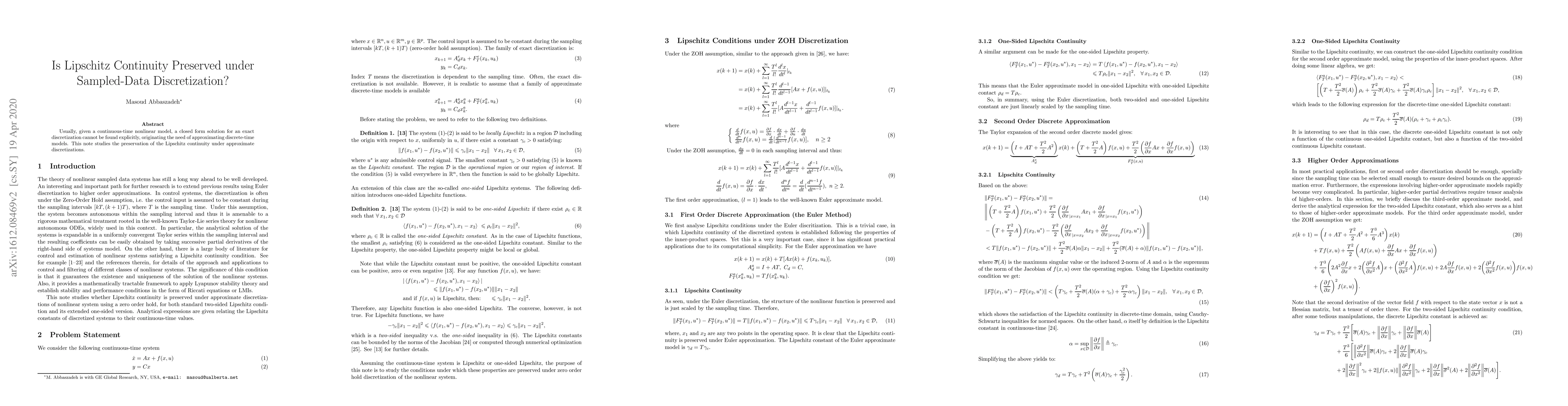 Usually, given a continuous-time nonlinear model, a closed form solution for an exact discretization cannot be found explicitly, originating the need of approximating discrete-time models. This note studies the preservation of the Lipschitz continuity under approximate discretizations.